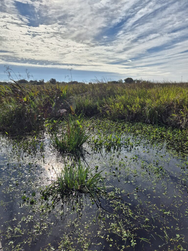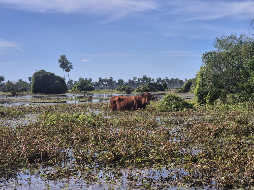 Il n’y a qu’un mètre de profondeur environ et la zone est complètement asséchée en hiver, laissant place à un tout autre paysage. A priori nous sommes plutôt au début de la saison, les mois précédents particulièrement pluvieux ont inondé les environs.