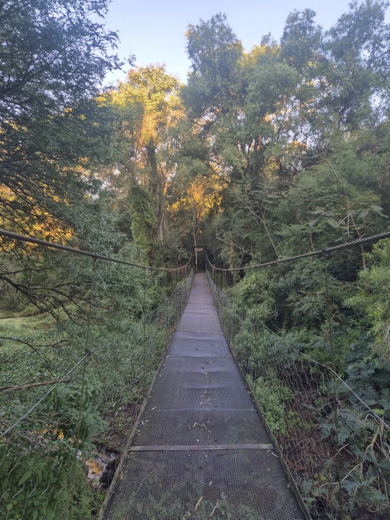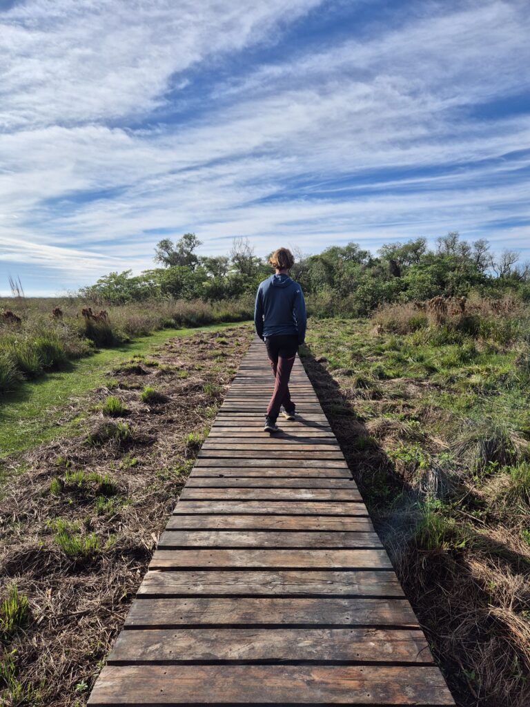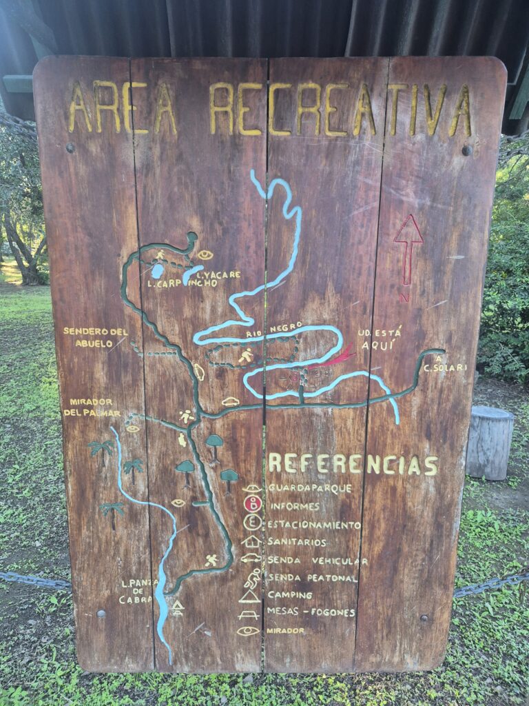 Le parc dispose de 3 sentiers très bien maintenus permettant d’apprécier les différents environnements et les animaux qui peuplent chacun d’eux. Pour le coup, on observera moins de faune qu’à Ibera, notamment en raison de la densité de végétation. Le sentier botanique offre une petite balade autour de l’étang de l’estancia. Quelques panneaux présentent les anciens propriétaires et le don des terres à l’état. Ce n’est pas bien long, on peut voir quelques capys au bord de l’eau.