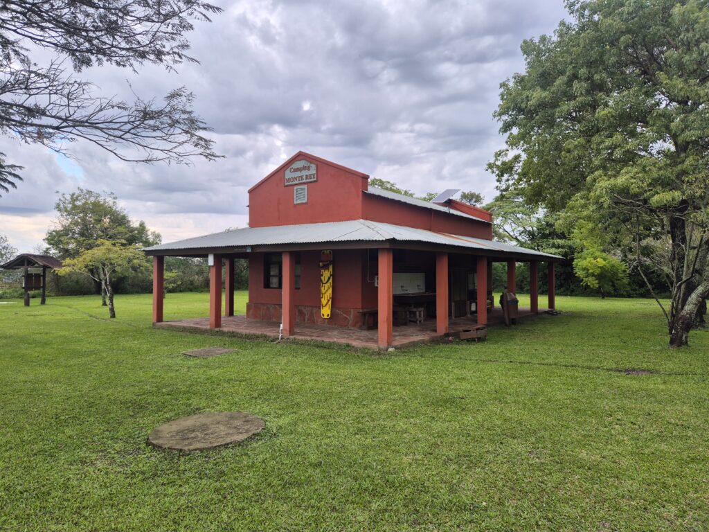 Arrivé au campement, on est chaleureusement accueilli par les rangers qui nous indiquent les différentes commodités. On peut se garer plus loin, au bord d’un quincho, avec électricité (lumière et prises électriques) cette fois ! Plus loin, il y a des barbecues, toilettes et douches (tiède au mieux). En leur demandant, on peut également obtenir le mot de passe du wifi (faible) près de l’accueil. A disposition de l’eau potable, de l’eau chaude (Argentine oblige) et des poubelles.