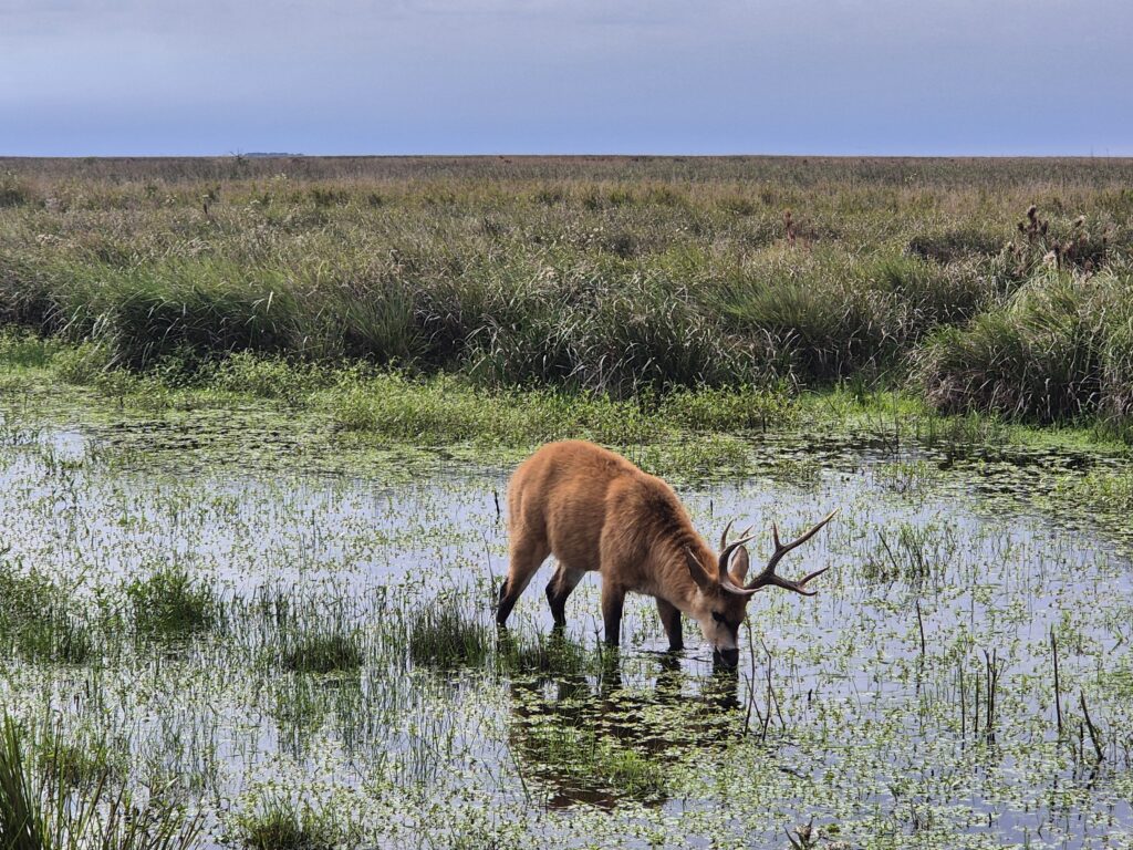 On aperçoit au passage un magnifique cerf des marais ! Quelle élégance !