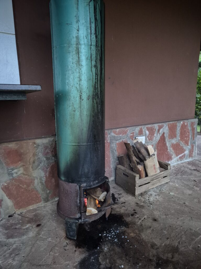 Ils nous demandent également si l’on prendra une douche, sans doute pour chauffer l’eau. On acquiesce volontiers, après avoir sué de tout notre corps sur la route la veille. A 17h, on les verra allumer manuellement le réchaud à bois, allongés devant dans le froid… Plutôt rustique ! D’ailleurs l’eau ne sera pas réellement chaude et on déclinera les jours suivants, pour leur éviter cette contrainte. La journée, le bâtiment central est également pourvu en électricité et avec un bon réseau wifi, mais ils coupent l’électricité le soir.