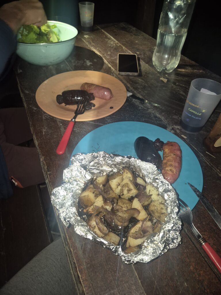 On profite d’un barbecue-raclette interminable et de la première douche chaude depuis des semaines. On demande la clé du wifi au ranger mais seuls les chefs la connaissant, tant pis pour nous.