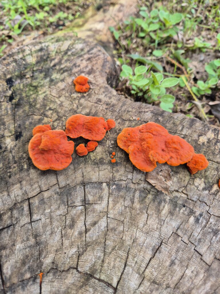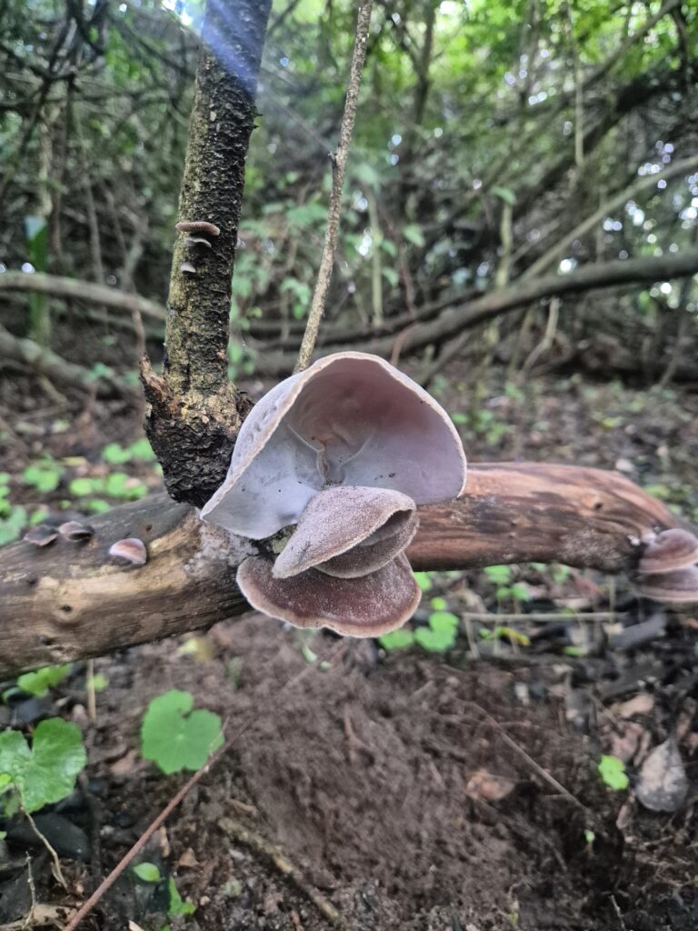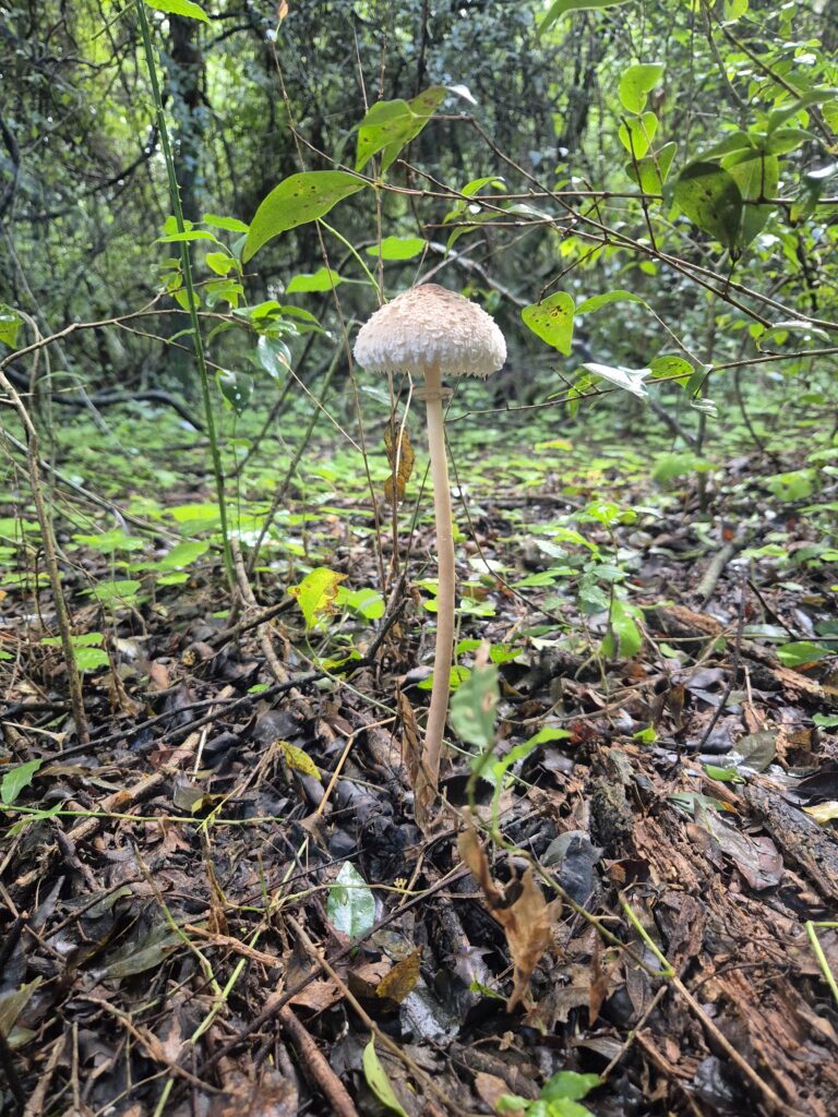 Il pleuvra sans discontinuer toute la nuit. Il ferait presque frisquet d’ailleurs. Dire que la température peut monter à plus de 40°C à certaines périodes de l’année… Au matin, enfin, la pluie s’est arrêté. On en profite pour explorer les environs, notamment le bosquet dans lequel on s’est perdu la veille. Il regorge de variétés mycologiques.