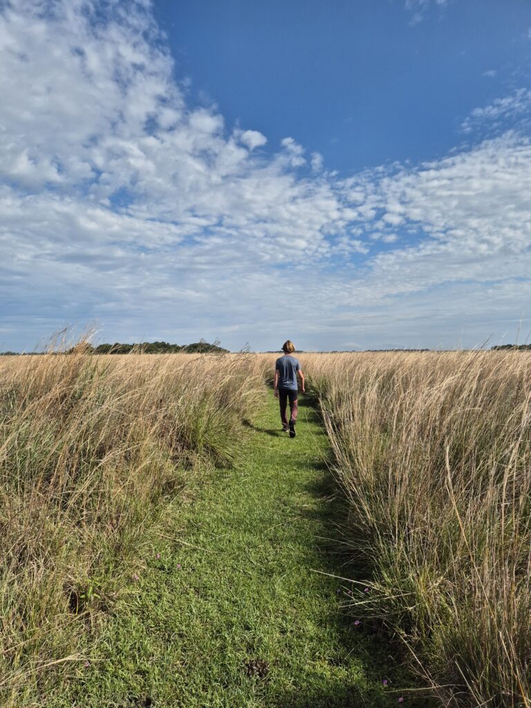 Le sentier est plat (comme toute la région), on marche tranquillement en cherchant les animaux cachés dans les marais.