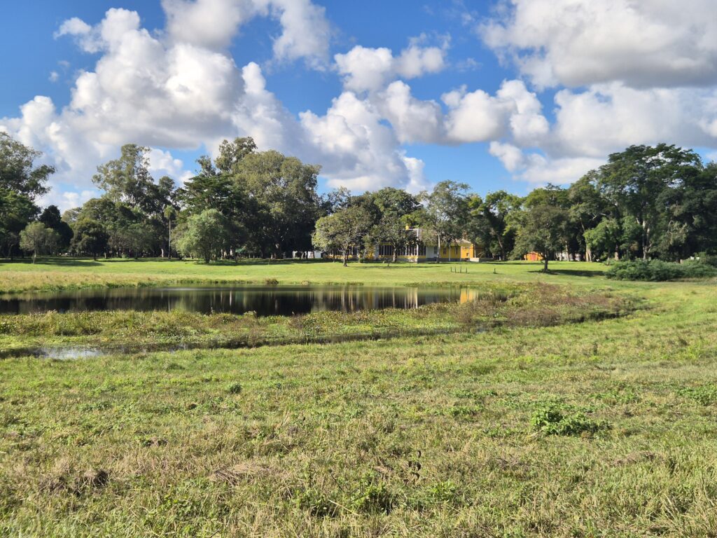 Passionné de flore, il planta de nombreux arbres au sein de la propriété, communs à la région ou non. C’est ainsi qu’on croise d’innombrables orangers, palmiers, palo borracho… Au milieu errent sereinement capybaras, oiseaux, renards, biches…