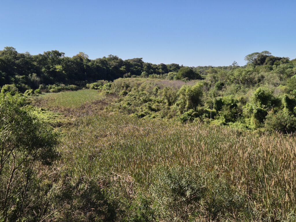 Quand on arrive enfin à la boucle des lagunes, c’est avec déception qu’on constate qu’elles sont recouvertes de roseaux, impossible d’y déceler un quelconque animal ! Idem pour la seconde lagune, pas de crocos ni de capybaras à l’horizon malgré ce que leur nom laissait penser…