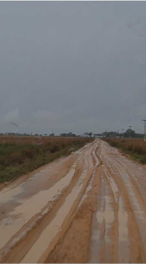 La piste, ou plutôt la longue étendue de terre broyée, qui mène au village boueux de Fortin la Soledad est longue et tortueuse. On dirait qu’ils sont en train de refaire la route, elle est tantôt compactée tantôt dans un état très douteux, il y a même quelques centaines de mètres de sable. Ce doit être impraticable en cas de pluies récentes !
