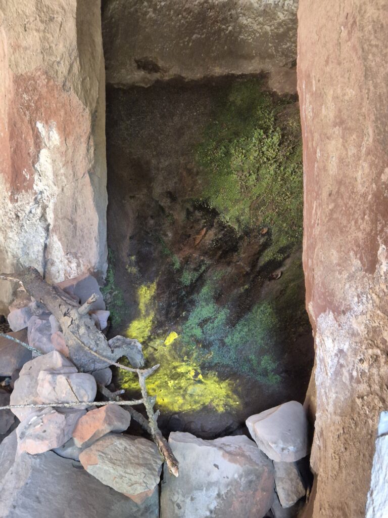 On parvient ensuite à l’extérieur où plusieurs bassins se sont formés à la surface et on fait face à un beau canyon verdoyant, symbole de la tectonique des plaques qui a forgé la région.