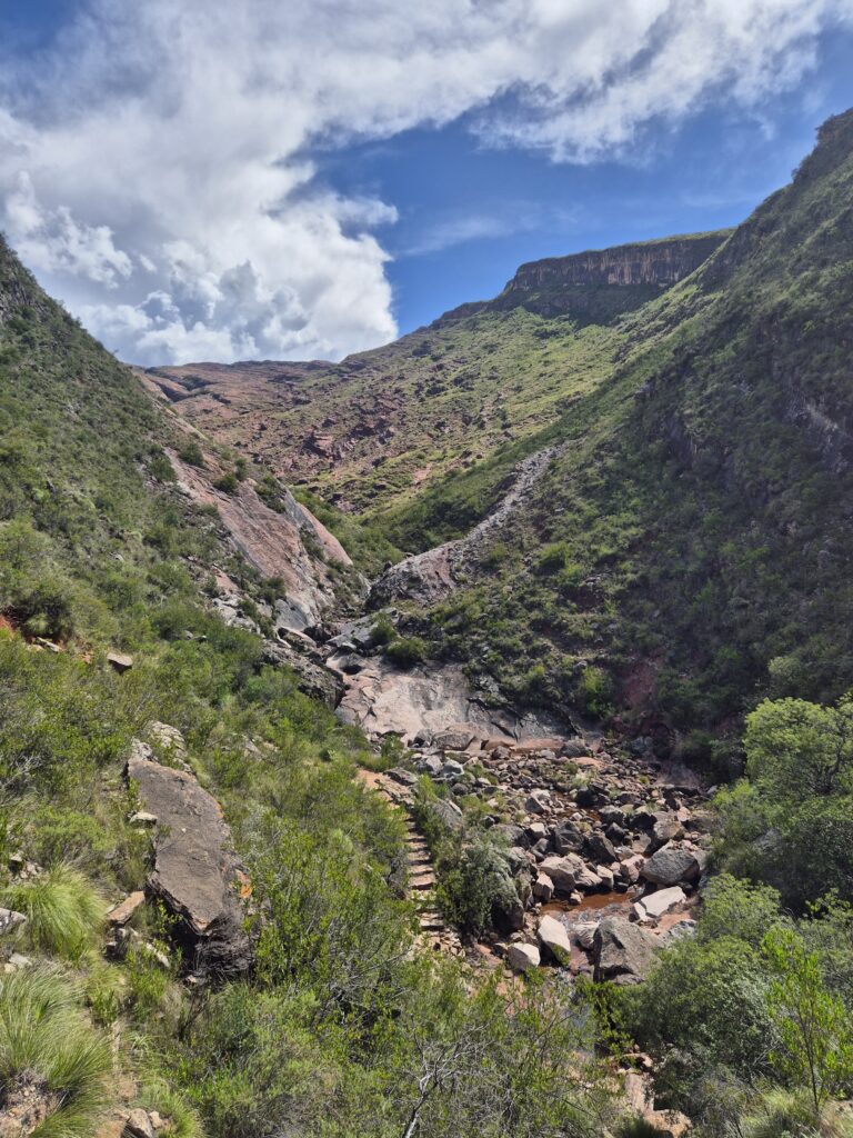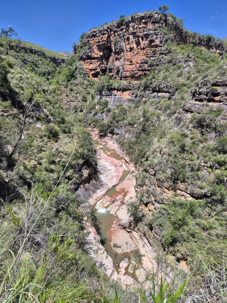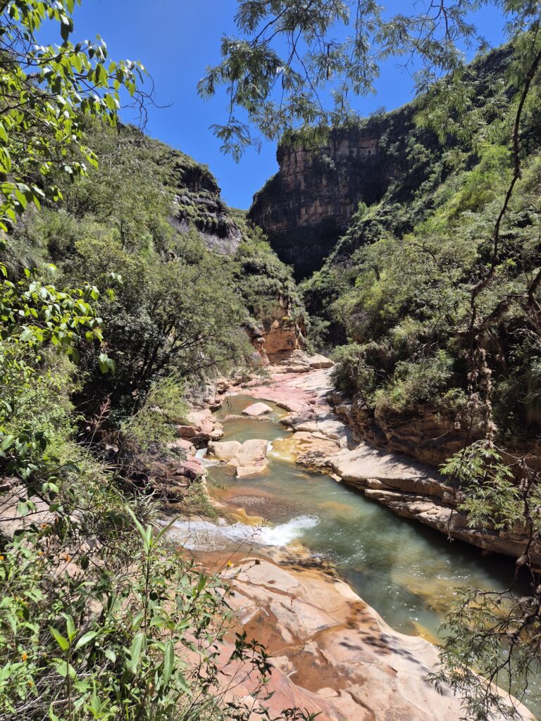 On rejointe le haut du canyon et on prend un sentier escarpé pour descendre jusqu’à la rivière. On doit retirer les chaussures à plusieurs reprises pour traverser. On prend ensuite un sentier pour longer la suite du canyon avant de redescendre complètement au bord de l’eau.