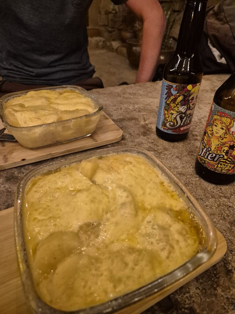 Le premier soir, on se fait plaisir. Un petit restaurant sur la place a bonne réputation, il est tenu par un suisse et forcément… propose à la carte tartiflette et raclette ! La petite terrasse intérieure est charmante, on prend une bière locale et on jette notre dévolu sur la tartiflette. Après les multiples fondues improvisées à l’arrière du van et celle de Bariloche, après la raclette de Cafayate, c’est au tour de la tartiflette, notre première du voyage ! Et on n’est pas déçus, pour 60bs (environ 6€) elle est super et ferait tout à fait illusion sur une table savoyarde !