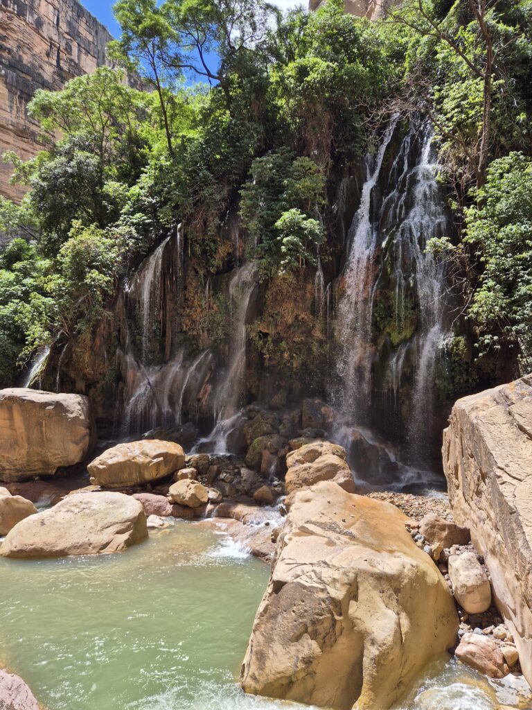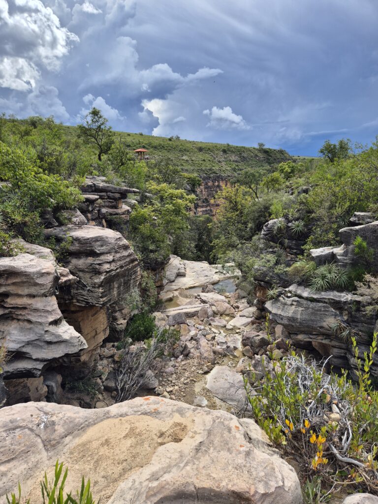 Empreintes de dinos, peintures rupestres, formations géologiques… Il y en avait des raisons pour classer la zone comme protégée, pourtant c’est un perroquet en voie d’extinction, l’ara au front rouge qui en est à l’origine ! A vrai dire, tout le monde en a presque oublié la raison, on n’a pas vu une seule mention de cet oiseau sur place…
