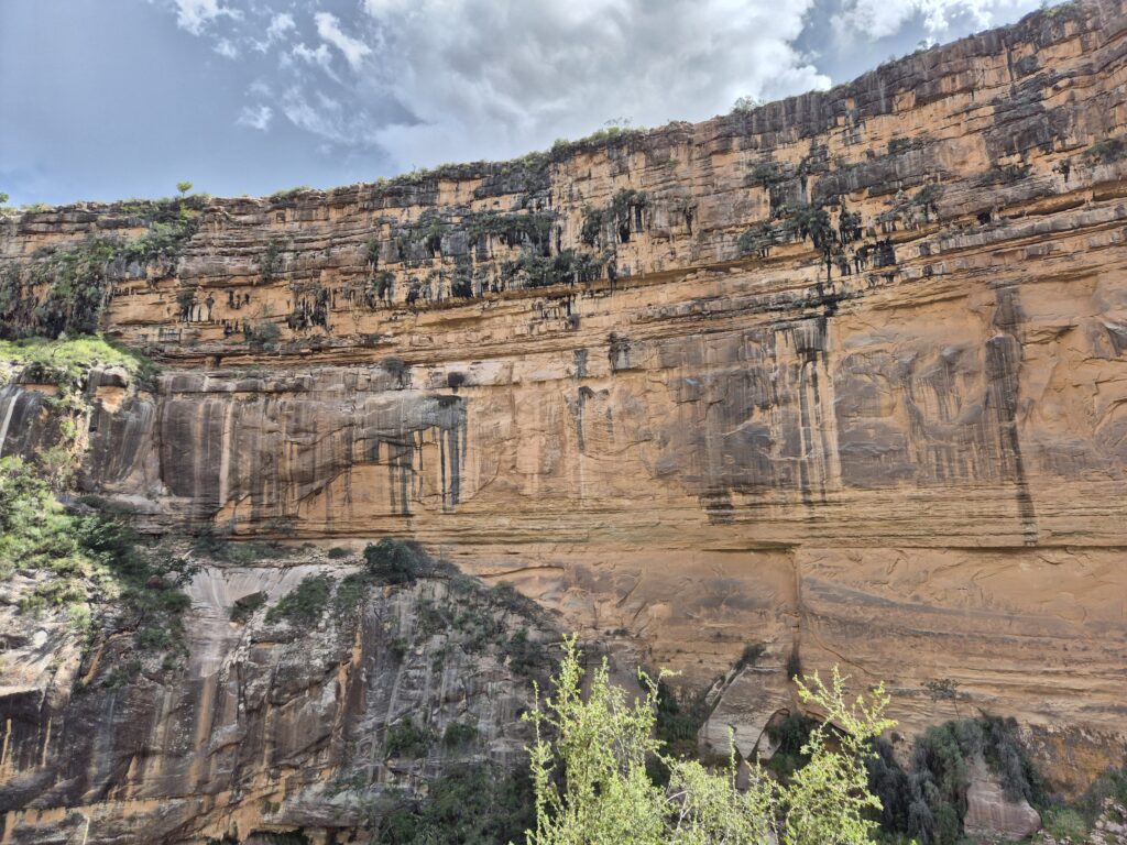 Il est temps de remonter en haut du canyon, ça grimpe dur et on parvient à un mirador où l’on peut apprécier les différentes strates et sédiments qui composent les falaises.