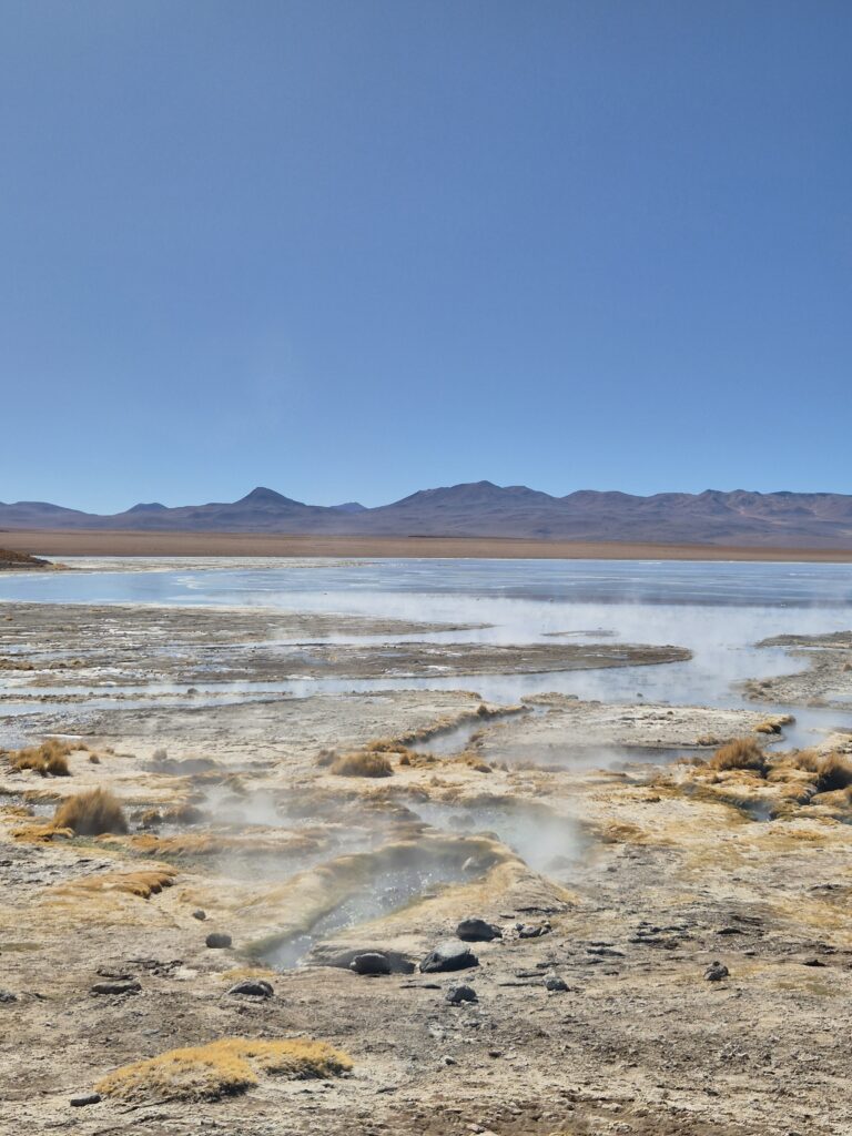 Nous passons le Désert de Dali, montagnes colorées et passage connu du Sud-Lipez, et nous dirigeons vers le petit village de Polques et ses eaux thermales.