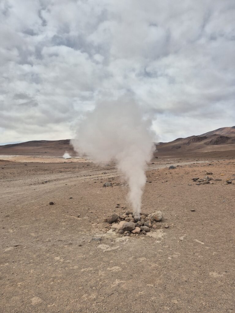 On finit par sortir, aujourd’hui on aimerait rejoindre Villa Mar et quitter le parc. Sur le chemin on veut quand même tenter d’observer les geysers et de rejoindre la laguna Colorada, alors une bonne journée nous attend. Le vent s’est déjà levé, on préfère payer un thermos d’eau chaude à 5BOB auprès de l’hospedaje et on prend un café au chaud avec nos amis suisses.