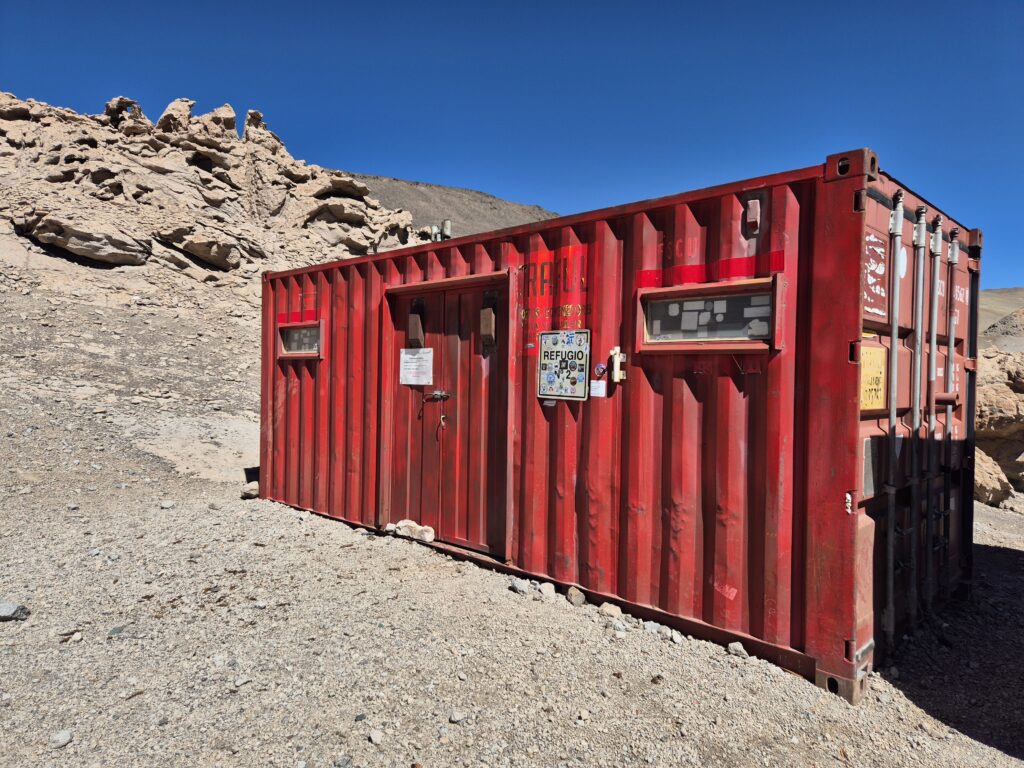 C’est sans doute le refuge le plus prisé, les groupes y montant parfois la veille de l’ascension. C’est un container qui offre 6 lits avec matelas et un espace de vie, au final c’est le plus grand après Lucero. Lorsqu’il est rempli, la température reste plutôt correcte à l’intérieur. Un bon 4×4 est impératif pour s’y rendre, la route depuis Atacama est pentue et sableuse à souhait !