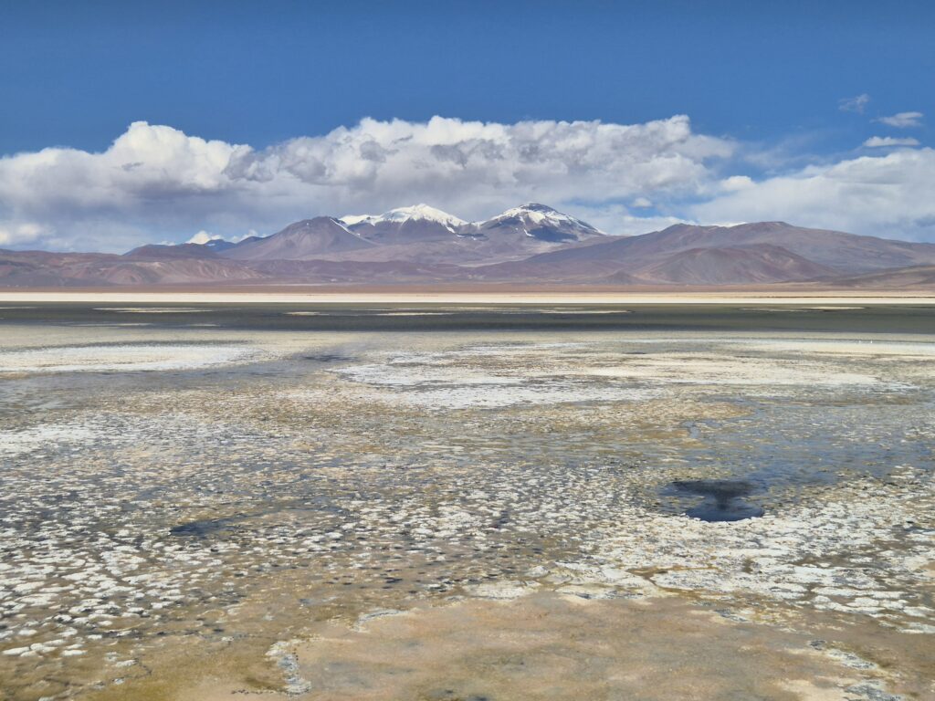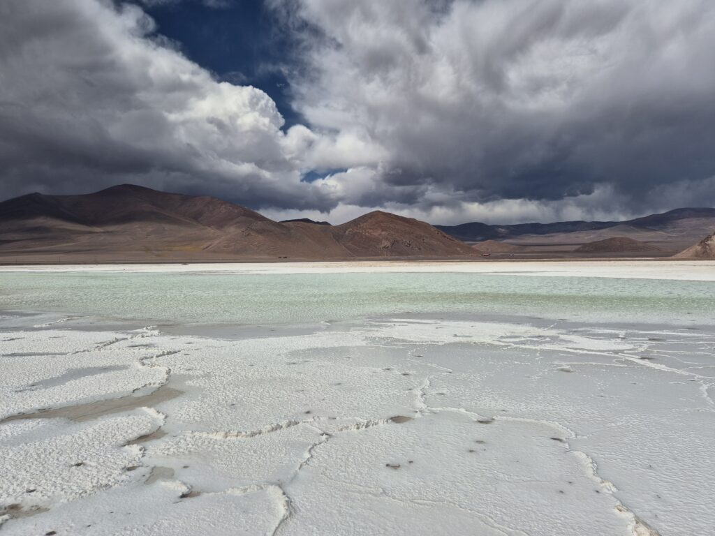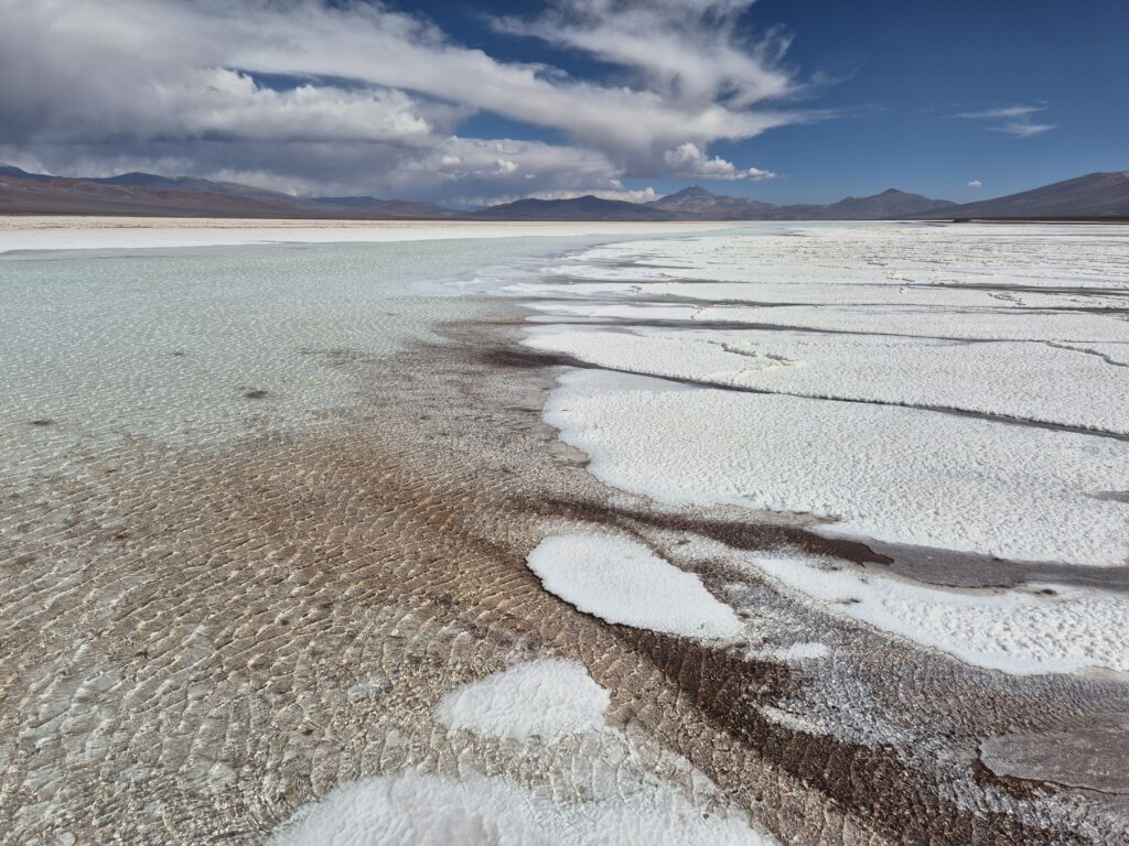 La salar est exploité pour ses réserves de lithium, ce qui explique sans doute qu’il ne soit pas inclus dans les limites du parc national. On croise quelques pick-ups et camions qui transportent du minerai, et on peut apercevoir des installations au beau milieu de celui-ci.