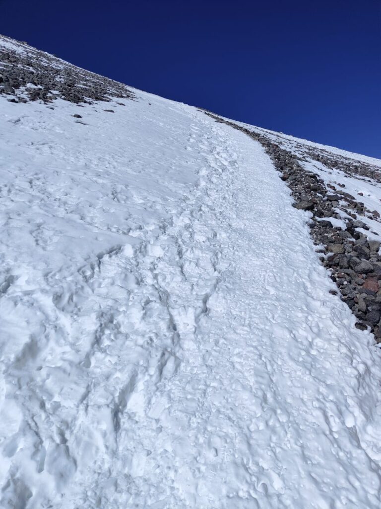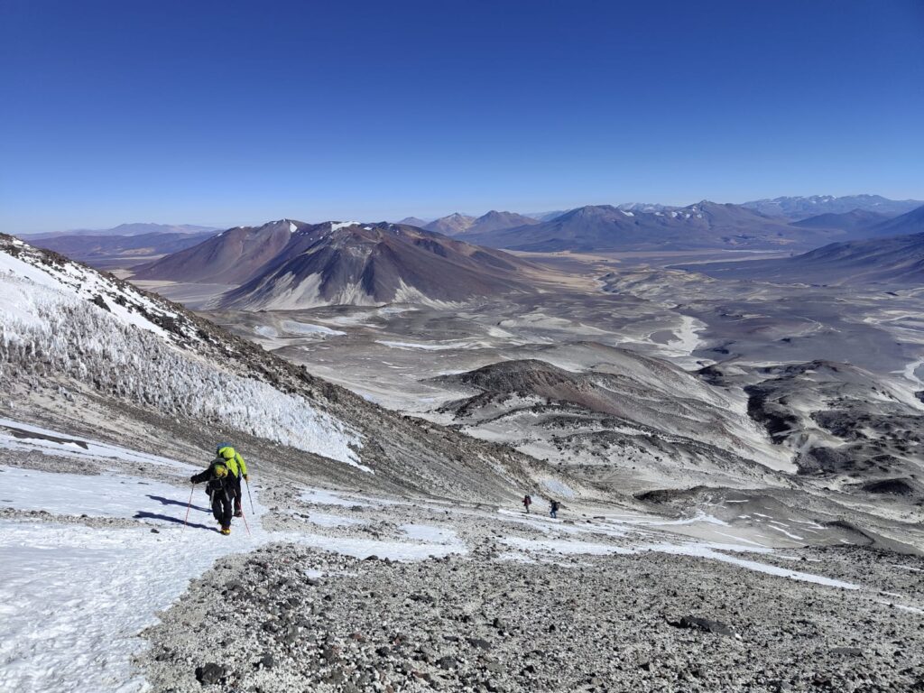 Le mois de décembre est sans doute le plus prisé, c’est à cette époque que vous croiserez le plus de monde. Sans être non plus l’Aconcagua, il n’est pas rare qu’une centaine de personnes grimpent certains jours. Janvier reste un bon mois, ensuite c’est plus contrasté, la météo est moins stable. En février 2025, il y avait eu d’importantes chutes de neige et le temps était particulièrement changeant lorsque nous sommes montés sur l’altiplano.