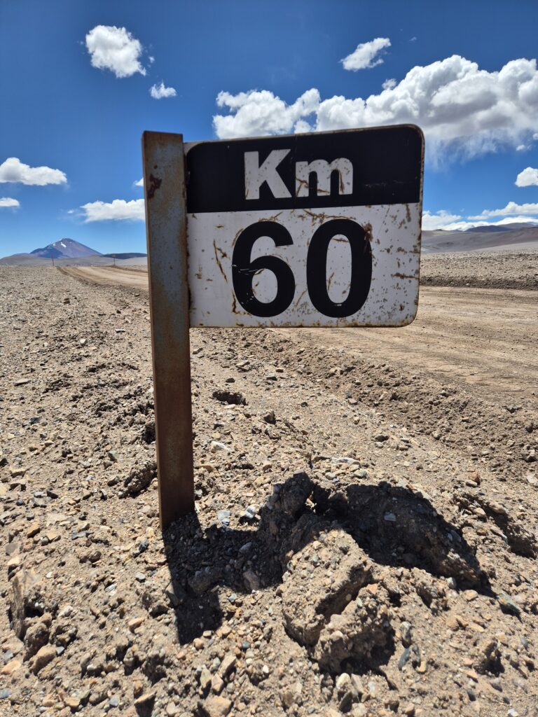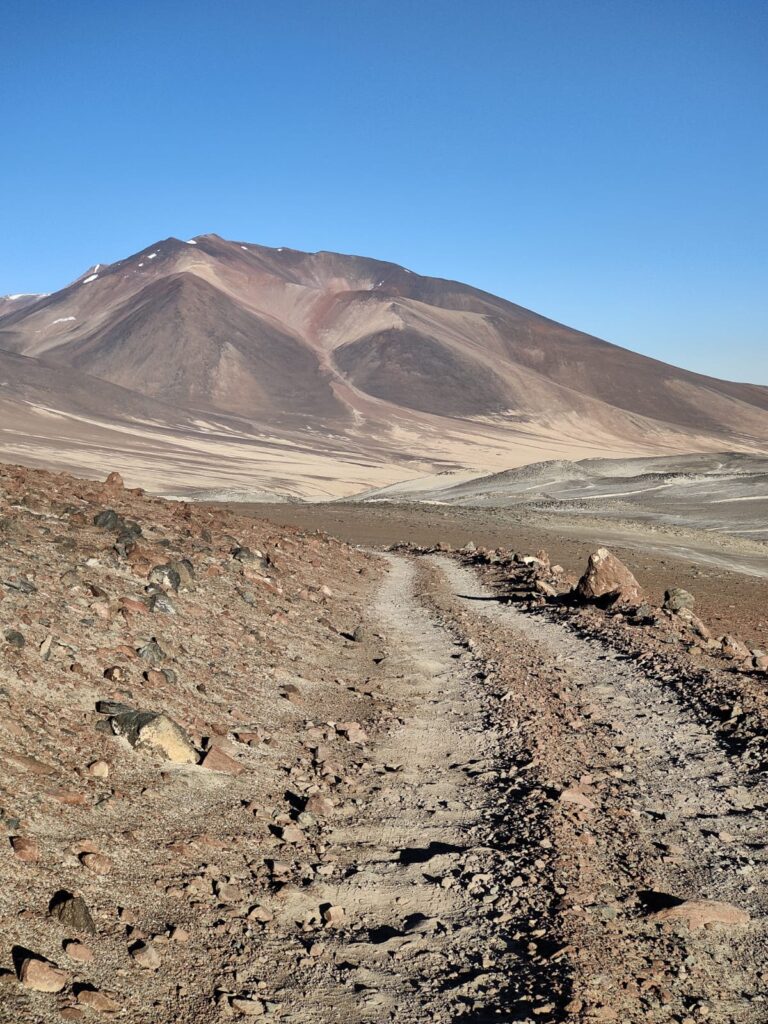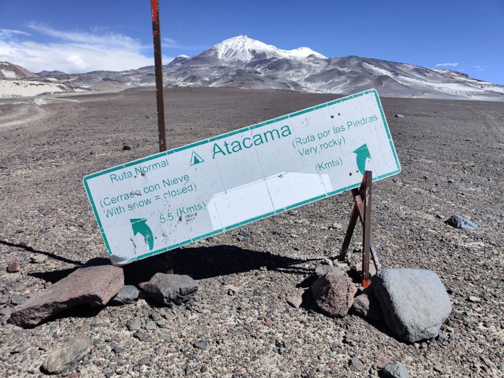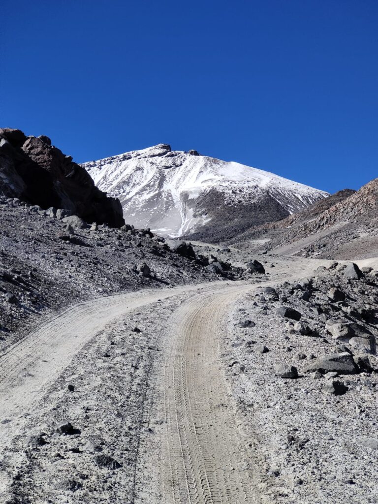 Le chemin est bien tracé et réalisable en véhicule tout terrain jusqu’au refuge Tejos à 5800m. Un témoignage d’il y a quelques années fait même mention de la possibilité de monter jusqu’au refuge Atacama (6100m) avec un véhicule classique à 2 roues motrices, photo à l’appui.