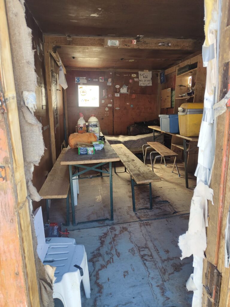 On poursuit jusqu’au refuge n°2 où l’on passera la nuit, autour de 3000m. Un couple d’argentins occupe déjà le refuge, on leur laisse la place et on s’installe à côté, le refuge nous permet surtout de nous abriter du vent et d’avoir du réseau. Il y a plusieurs années, lorsque John était passé par là, il y avait peu de passage et les refuges étaient souvent vides. Désormais ça fait un peu camping, tous les refuges sont généralement occupés.
