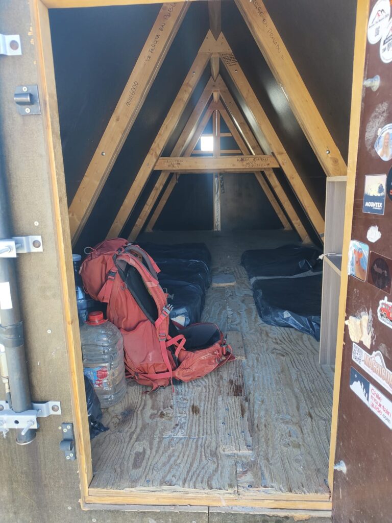 Pour le refuge Atacama, il n’y a guère plus d’un emplacement pour dormir, il ne doit être que rarement utilisé dans ce but, plutôt pour manger. Quelques tours décident de s’acclimater là-bas (en tente auquel cas) même si beaucoup préfèrent rester à la Verde. C’est pourtant le lieu idéal pour la veille de l’ascension, assez haut mais pas trop.