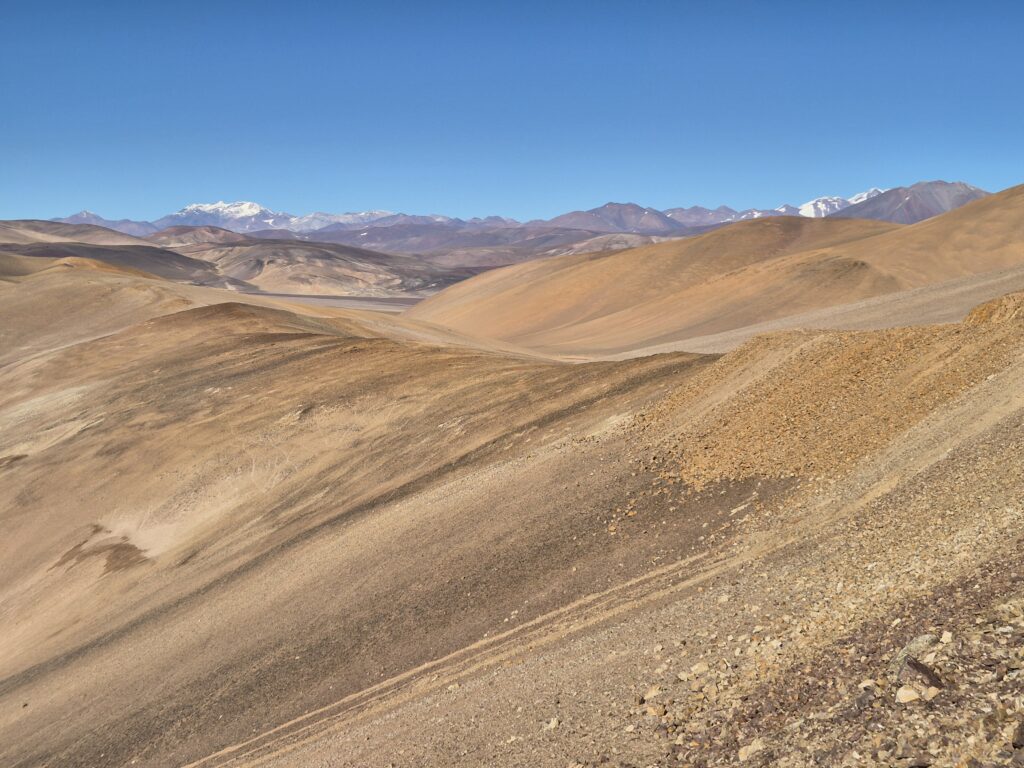 Direction le paso San Francisco à 4726m au pied du volcan éponyme. Un dernier refuge argentin est présent au col, c’est potentiellement le seul point avec accès internet jusqu’à Copiapio. On ne s’attarde pas, on reviendra dans quelques jours.