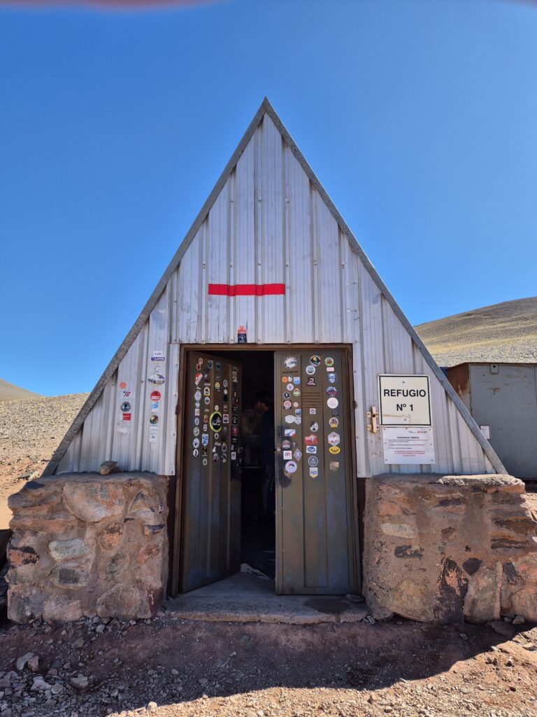 Côté chilien, ils sont plus sommaires. Il y a le refuge de la laguna Verde, ceux sur la piste des Ojos, un abri sommaire le long de la route qui descend à la douane et enfin le refuge payant de la laguna Santa Rosa.