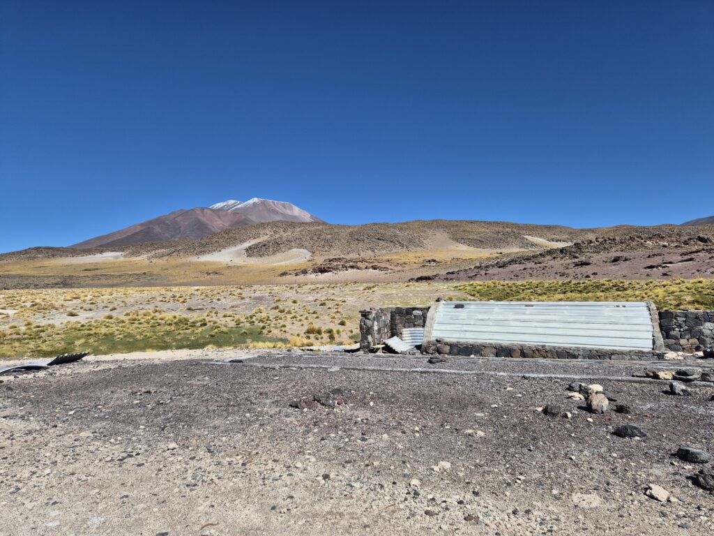 Ancien reten de carabinieros (poste frontière), le refuge est un peu en friche mais offre toujours des possibilités de s’abriter si besoin est, il est assez grand. On peut aisément y accéder par une piste depuis la route principale. On y est passé un soir en pensant qu’on y croiserait quelques groupes, mais le lieu est souvent délaissé au profit de la laguna Verde. Une seule compagnie semblait s’y être établie, derrière le refuge.