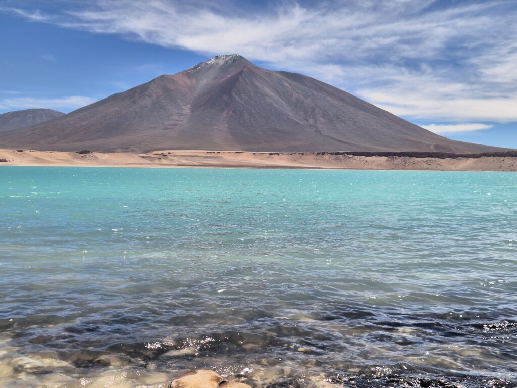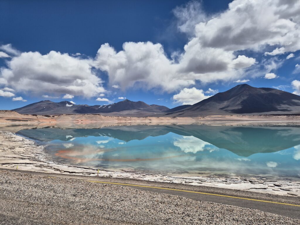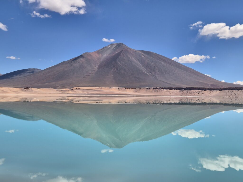 Dehors, la laguna Verde est une vraie merveille. Souvent le matin elle offre un parfait miroir émeraude, reflétant nuages et volcans. Autour les innombrables sommets offrent un véritable décor de carte postale.