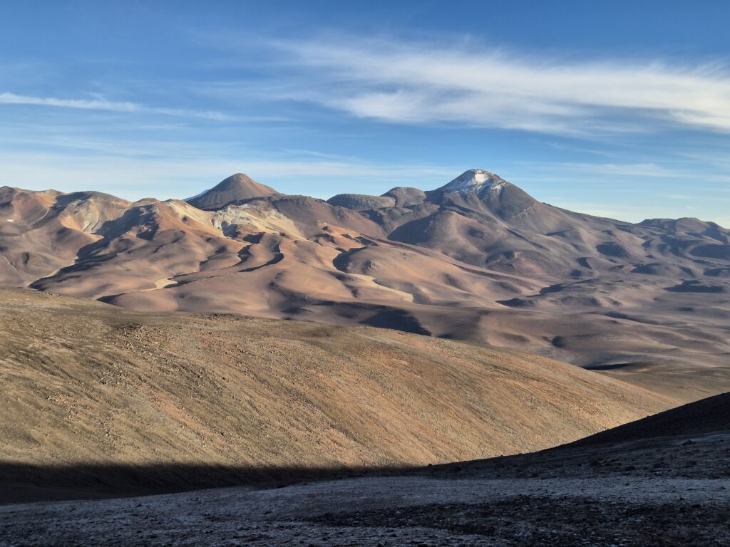 Nous envisageons une dizaine de jours d’acclimatation, puis 2-3 jours consacrés à l’expédition finale. En cours de route, nous prévoyons de visiter le Balcon de Pissis, la laguna Verde, le parc national Nevado Très Cruces ou encore le salar de Pedernales. Entrecoupés de pauses détente dans des thermes naturels, d’un A/R logistique à Copiapio et de quelques acensions graduelles, on devrait avoir de quoi s’occuper !
