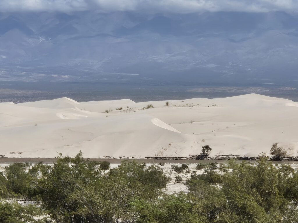 Les dunes, plus particulièrement celles de Medanitos qu’on entrevoit le long de la route, sont les plus hautes du monde, atteignant près de 1200m de hauteur.