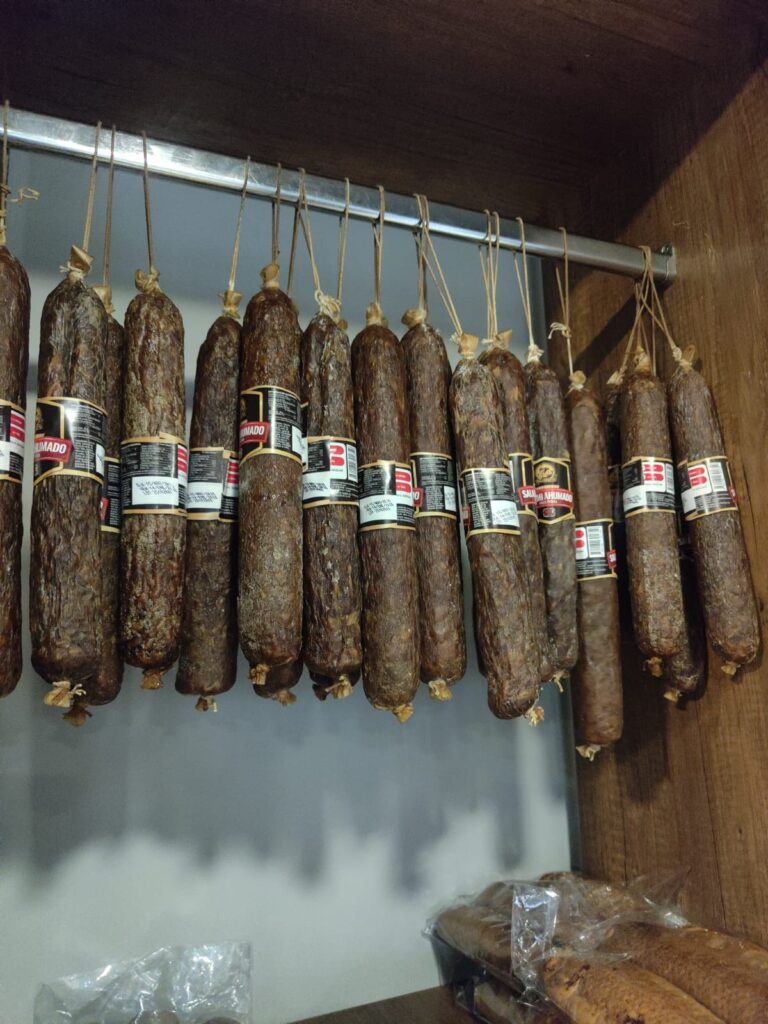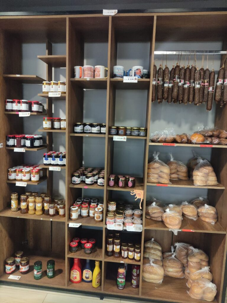 Pour la charcuterie, on trouve des produits de la coopérative mais également d’une autre petite entreprise opérant dans le village, créée par 2 suisses, avec : jambon cru, jambon blanc, mortadelle, saucisson sec, chorizo…