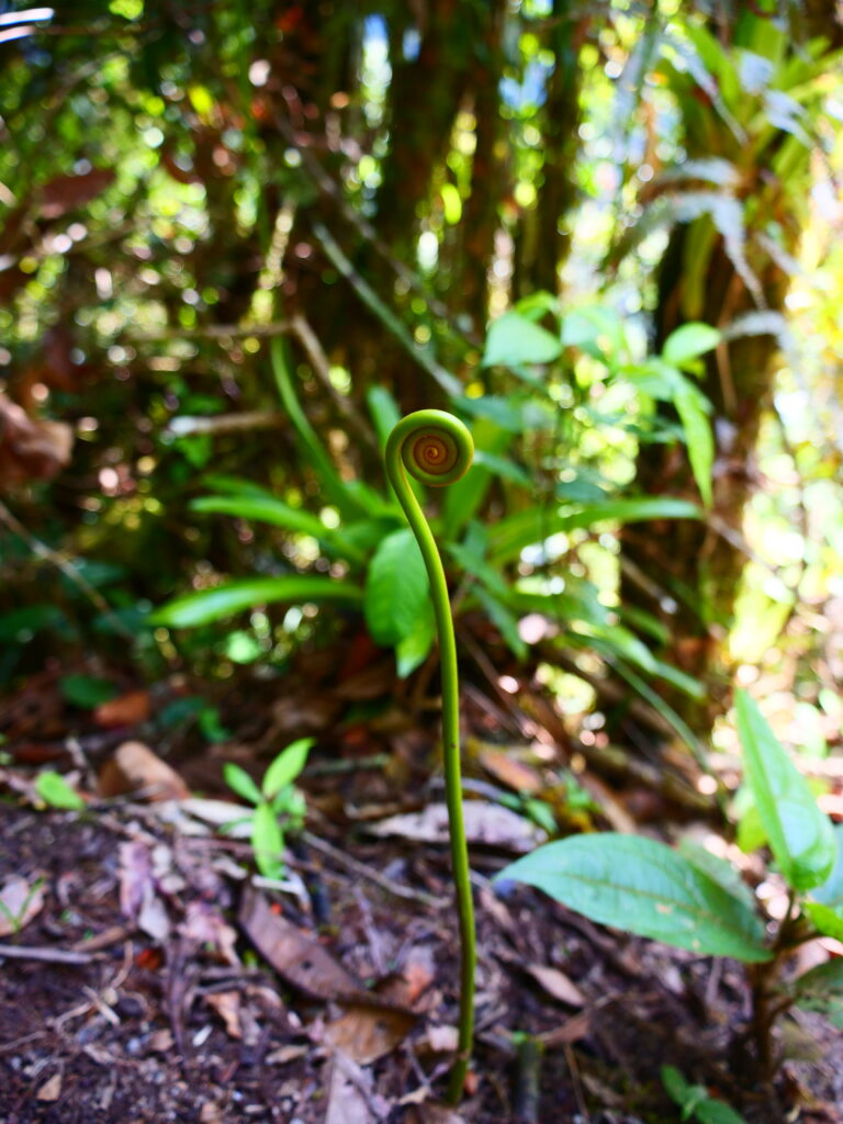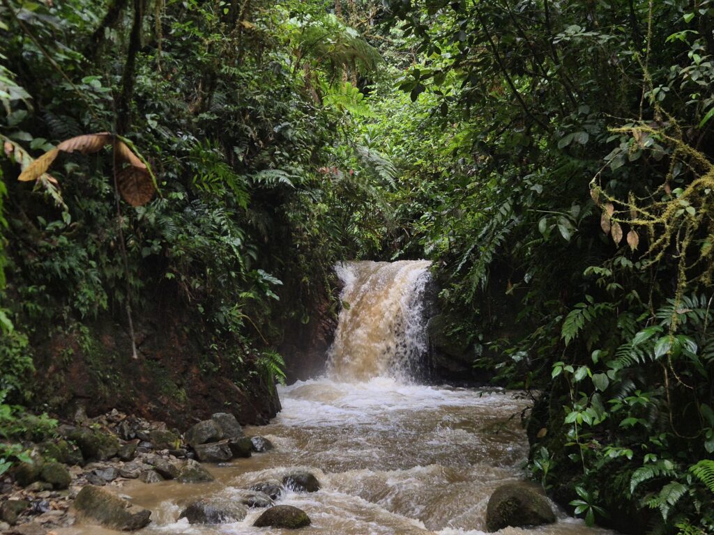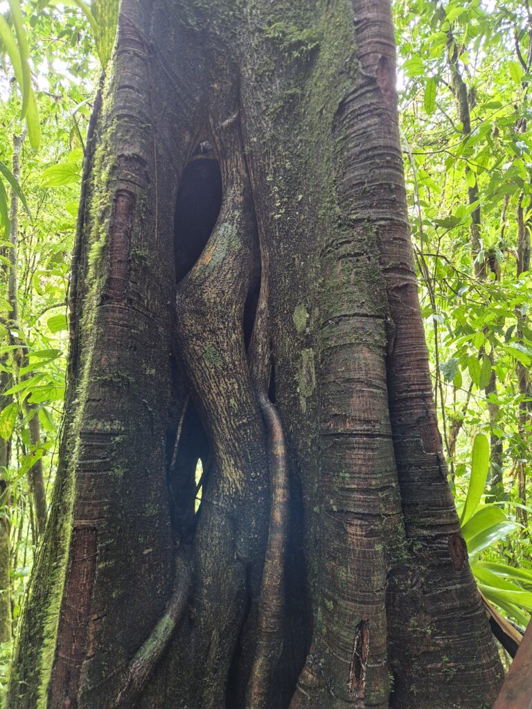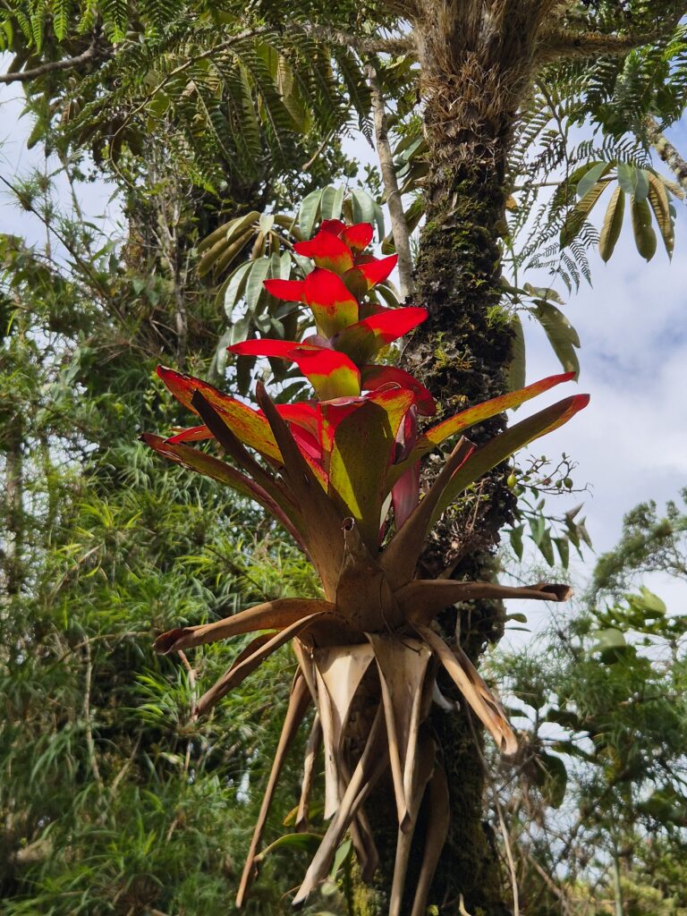 C’est le sentier le plus prisé, bien que la plupart des visiteurs s’arrêtent au premier mirador. La première partie se fait au travers d’une jungle épaisse où on s’arrête régulièrement pour photographier des fleurs ou observer des colibris et autres oiseaux.