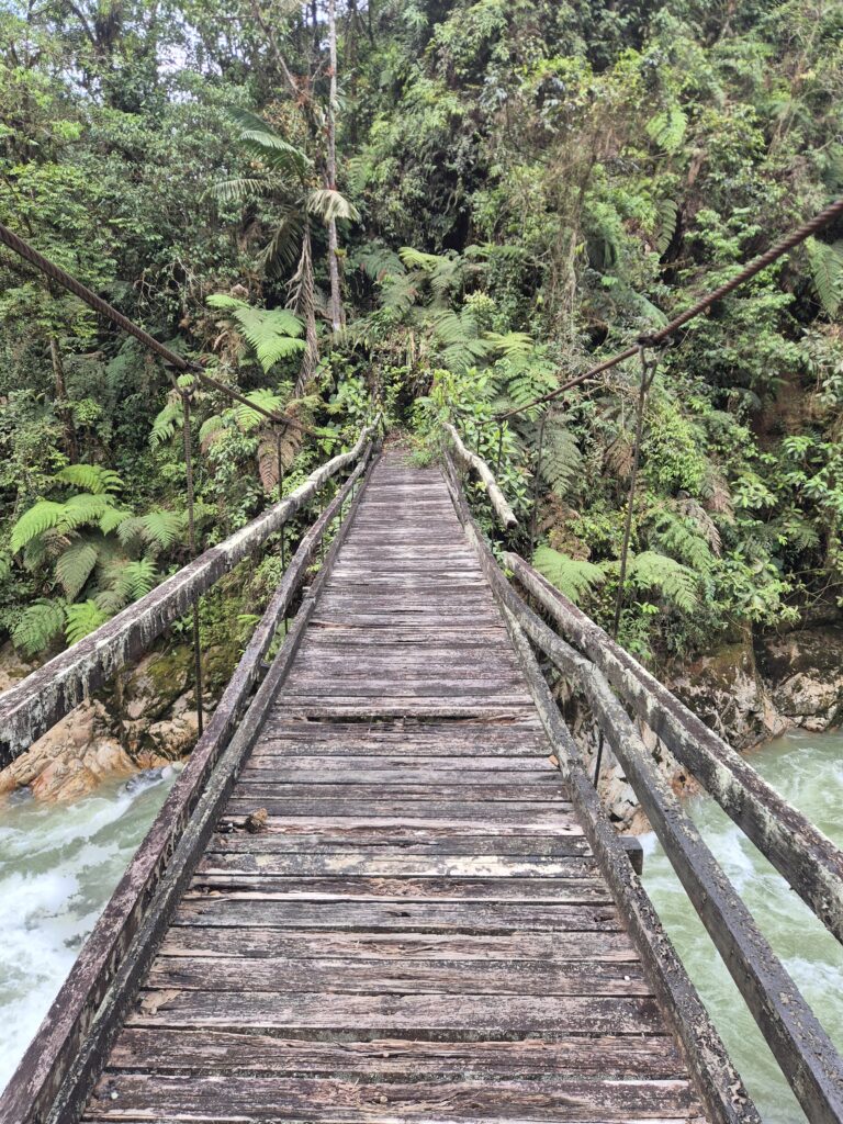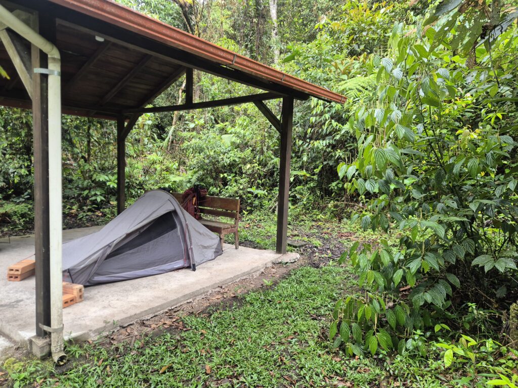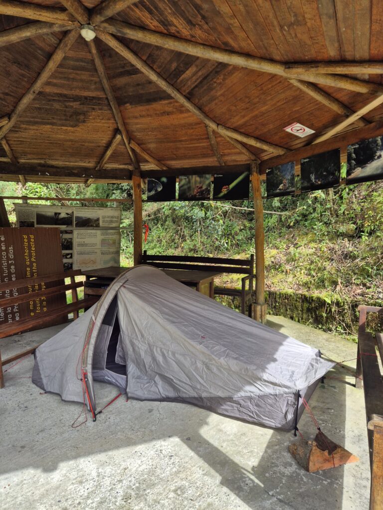 Cela représente un aller-retour de 28km, réalisable en 2 jours avec tente voire une grosse journée. Contrairement à ce qu’on lit sur divers sites, le sentier n’est pas interdit au public. Néanmoins, selon les conditions météo et l’appréciation des rangers, son accès n’est pas permis à n’importe quel quidam. A notre passage, considérant notre matériel et le fait qu’on puisse commencer tôt (en dormant sur place), les rangers étaient tout à fait disposés à nous laisser passer. La météo n’étant malheureusement pas au rendez-vous, on a préféré laisser tomber. La section étant peu voire quasiment pas parcourue, c’est un excellent choix pour s’enfoncer dans les vastes forêts vierges et tenter d’observer les animaux emblématiques du parc tels que le pudu, le tapir ou encore l’ours à lunettes.