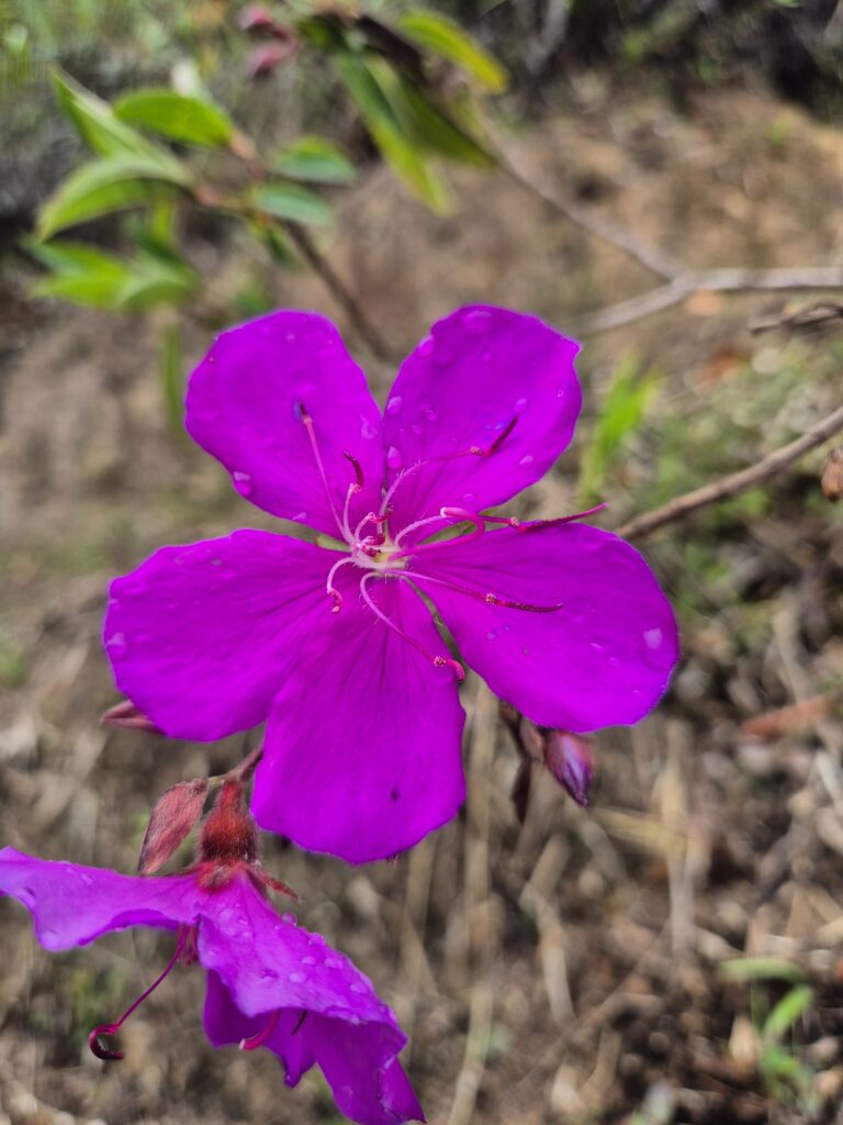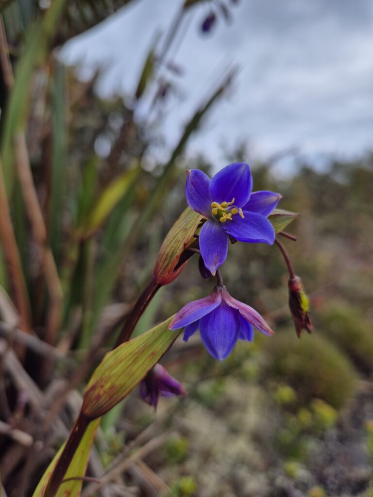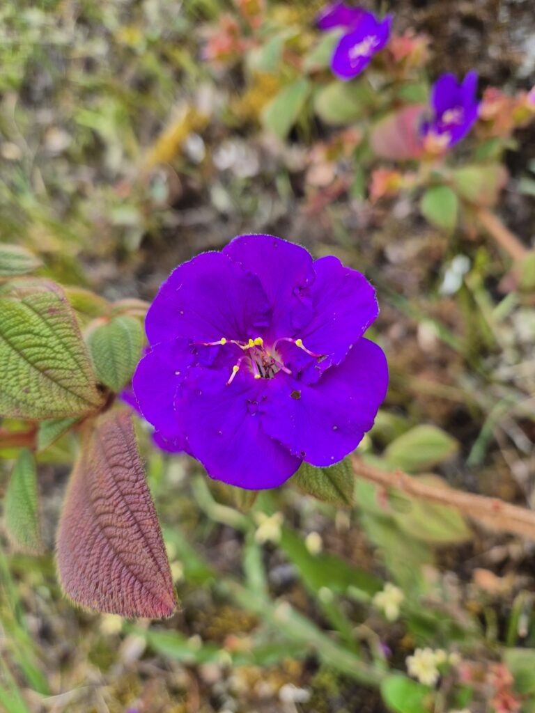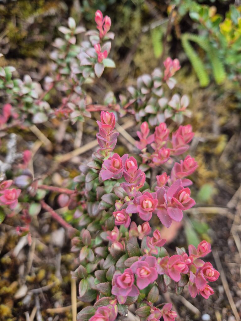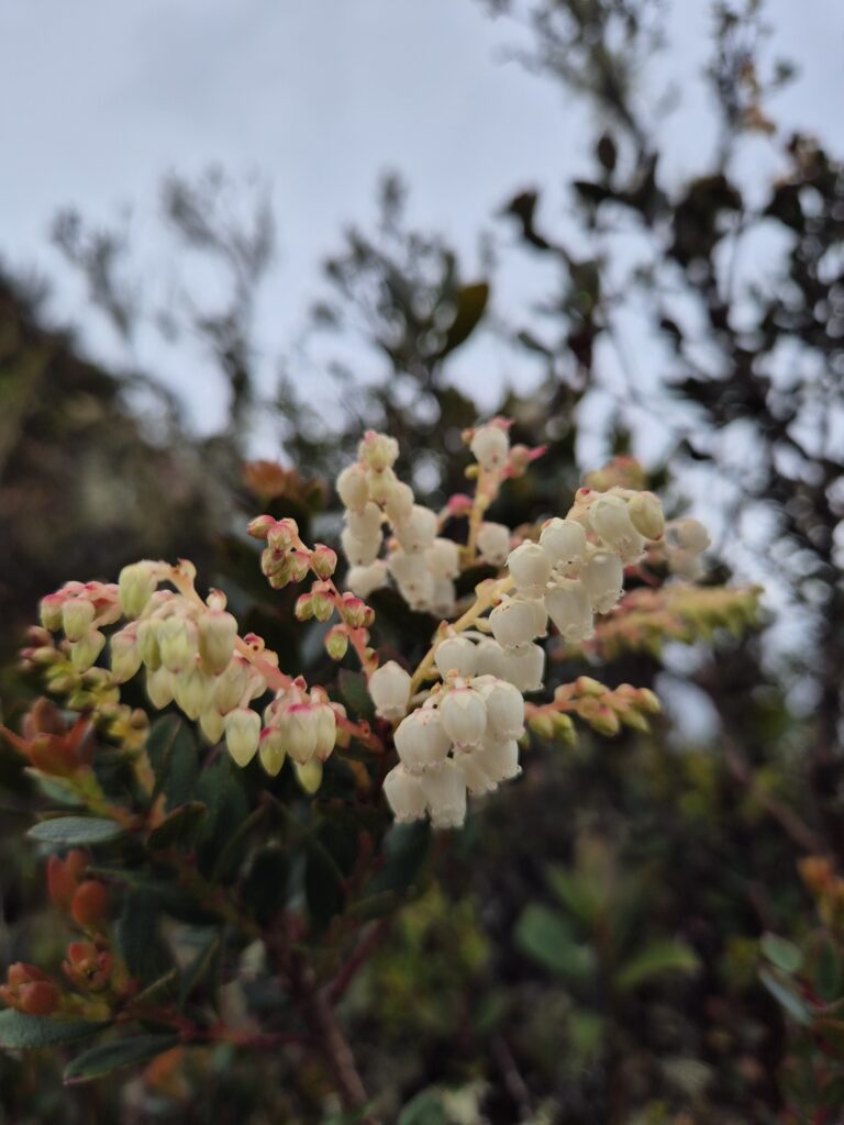 La végétation est bien différente de celle observée dans la première portion en sous-bois. On découvre de nouvelles plantes, fleurs, exposées aux terribles conditions qui règnent sur ces hauteurs.