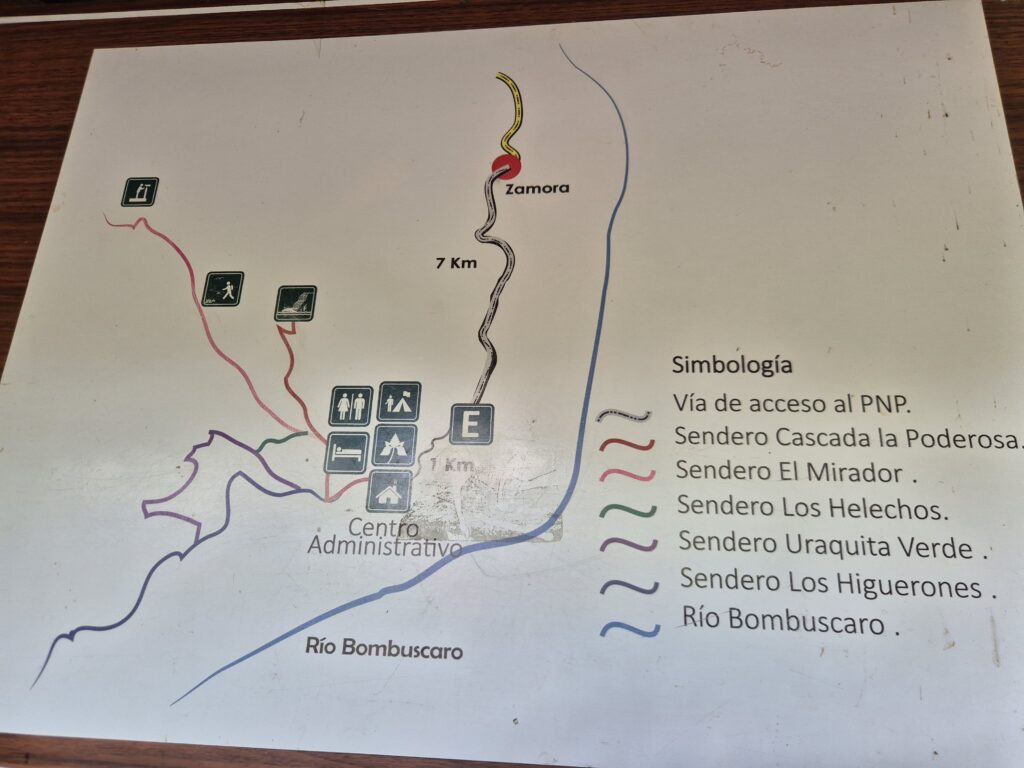 L’entrée est à quelques kilomètres au sud de Zamora. Il faut prendre un bus depuis Loja (à moins que l’on vienne de l’oriente) jusqu’au terminal de Zamora puis enchaîner avec un taxi, du stop (le week-end) ou comme nous, marcher cette portion de 7km, relativement plate.
