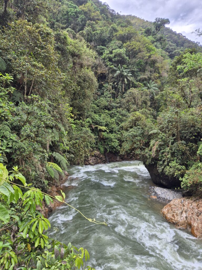 Nous sommes à la frontière avec l’Oriente. Il fait donc chaud, humide, avec une végétation haute et dense. On croise notamment beaucoup de papillons, insectes et amphibiens, également des moustiques.
