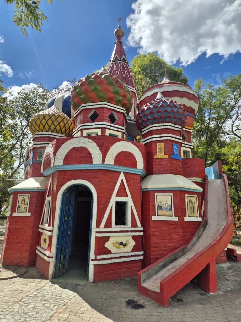 Enfin on atteint le nord de la ville et le mignon petit parc de Jipiro. C’est calme, verdoyant, et… enfantin. Le parc est décoré de nombreuses copies de bâtiments célèbres comme la Tour Eiffel, la cathédrale de Moscou, Chichen Itza…