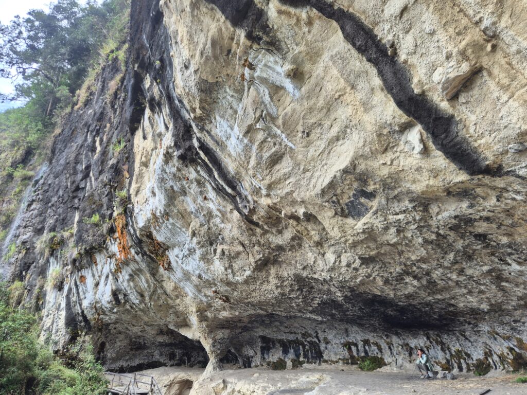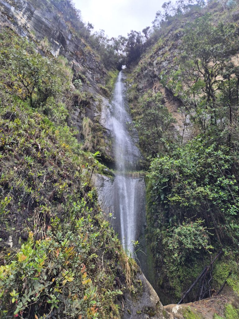 Au matin la météo s’est un peu calmée. Après un petit-déjeuner (toujours) au marché, à base de morocho (boisson chaude et sucrée à base de maïs blanc, lait, cannelle) et de tortilla de trigo/maiz (galette de blé/maïs, fourrée au fromage), on en profite pour rejoindre Banos del Inca, une jolie petite cascade avec quelques grottes sous les falaises. C’est une balade sympathique, malgré quelques chiens hargneux sur le chemin.