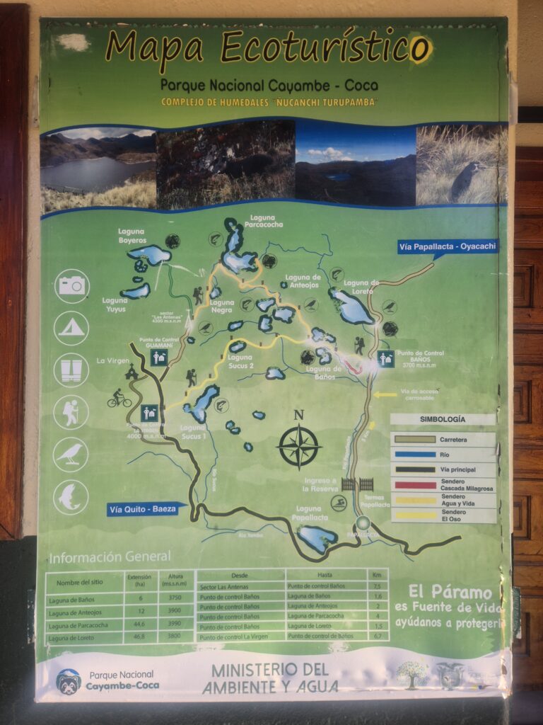 - Il n’est plus possible de traverser à pied/vélo jusqu’à Oyacachi, puisqu’ils considèrent que la distance (40km) est trop conséquente pour être réalisée en une seule journée et que le bivouac n’est plus permis.