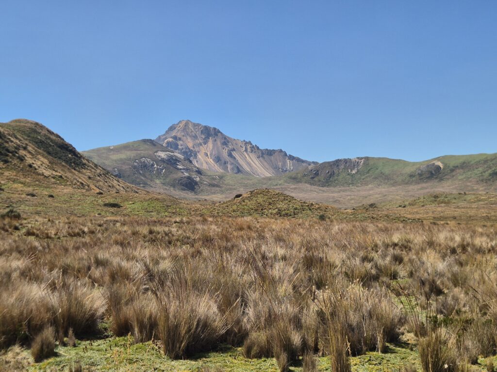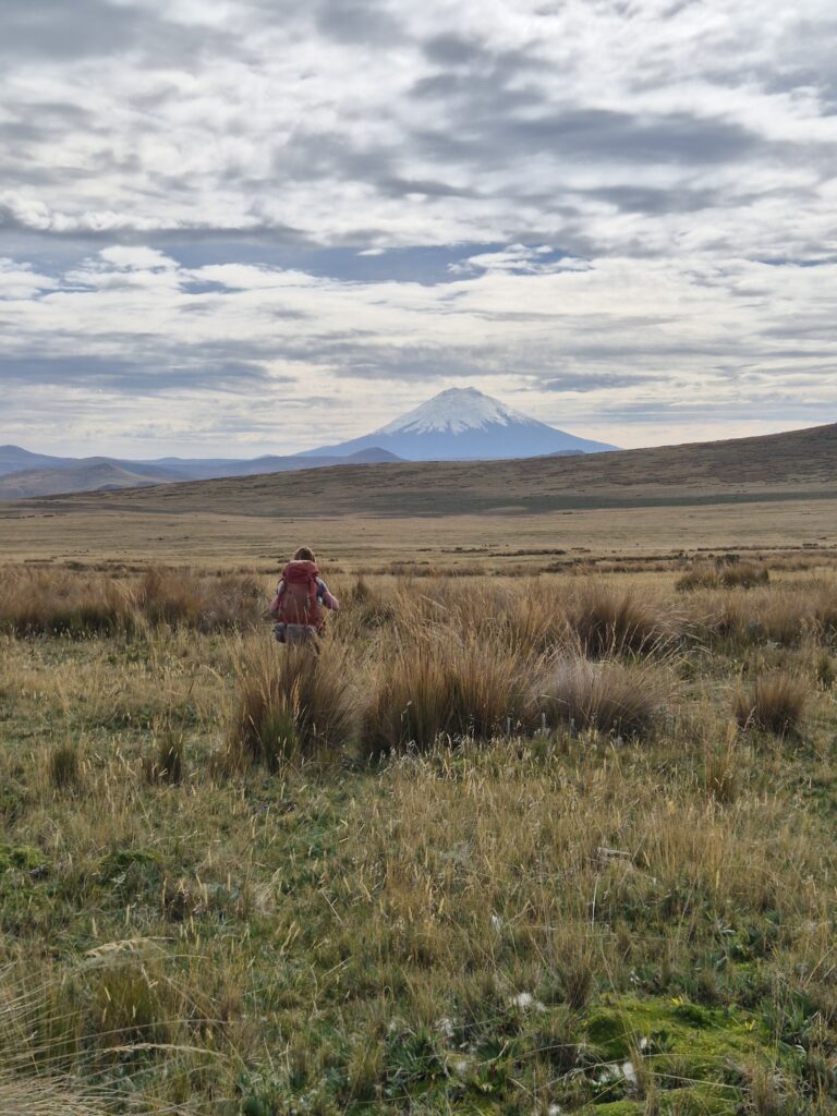 Sur la dernière portion, on s’égare à nouveau au milieu des pajas (hautes herbes, communément appelés saloperies par les randonneurs) avant de rejoindre la piste au Sincholagua. Ayé, c’est fini. Ou presque, la suite sera une partie de plaisir, une errance bucolique sur les vastes steppes de l’un des plus beaux volcans du monde.