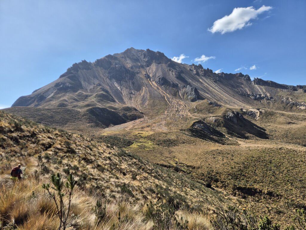 Le Ruminahui est un volcan au dôme éclaté qui fait face au Cotopaxi, il présente plusieurs sommets. Le Central (4630m) est le plus prisé, c’est le plus simple et le moins élevé. Le Norte (4721m) partage le même chemin avant de bifurquer sur un sentier peu marqué et qui nécessite sans doute un peu de crapahutage sur les rochers. Le Noroccidental (4490m) est quant à lui accessible depuis le nord, mais est peu documenté. Enfin, un dernier sommet à l’ouest n’est pas toujours mentionné sur les topos. OSM semble indiquer un chemin qui part du camping, atteint ce premier sommet et rejoint ensuite le Central via une arête. Je n’ai pas trouvé non plus d’infos dessus mais certains passage me semblent particulièrement exposés contrairement à ce que laisse penser la classification du tracé. Pour rappel, OSM est un projet collaboratif et tout ne doit pas être pris pour argent comptant, notamment sur ce continent.