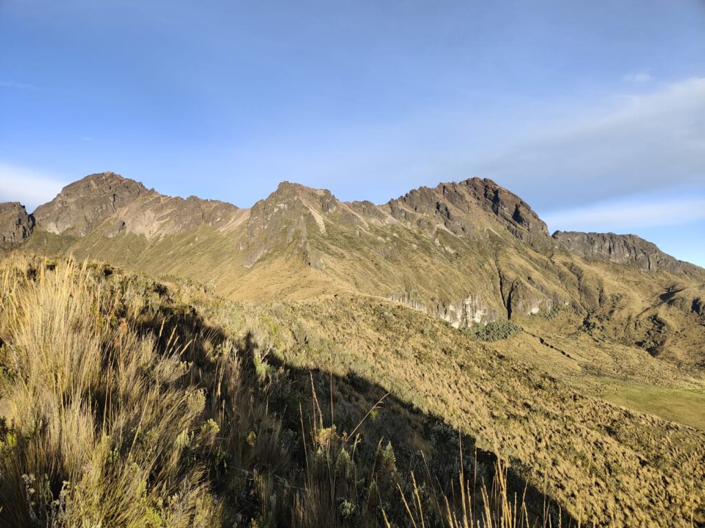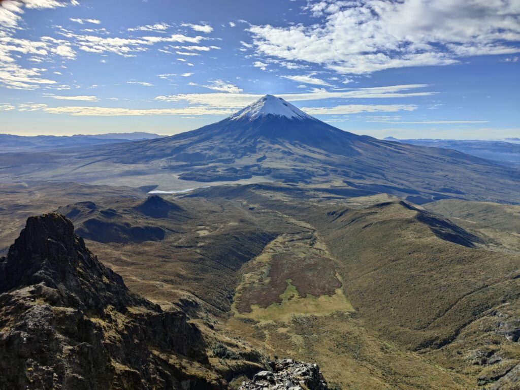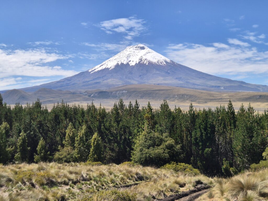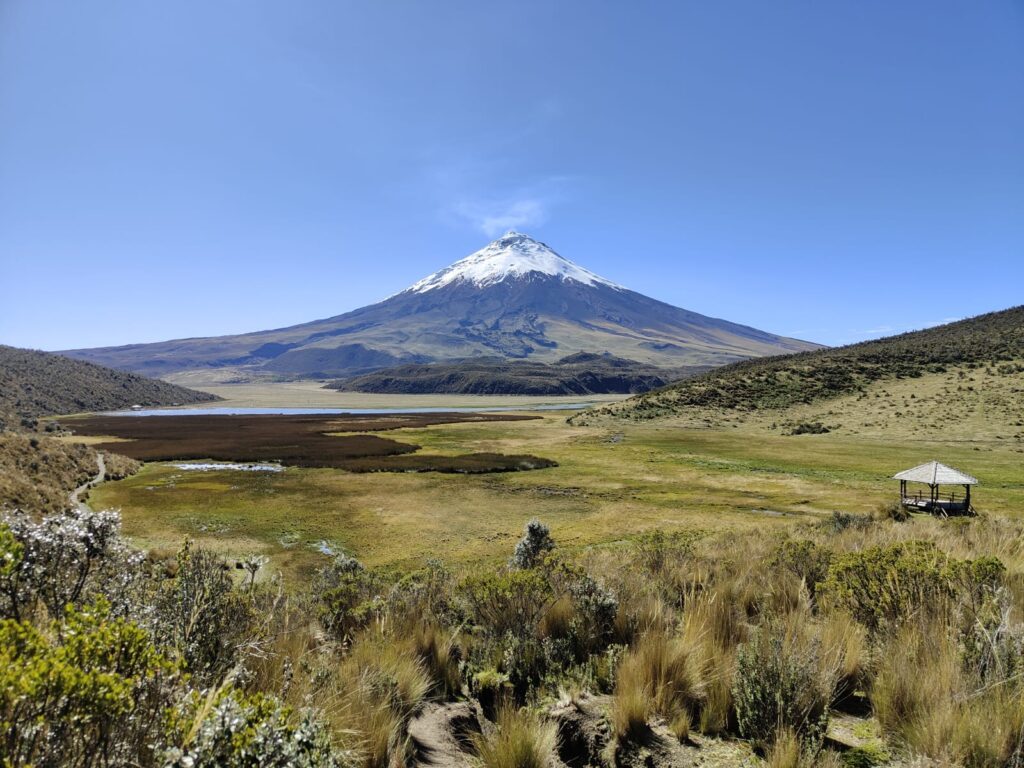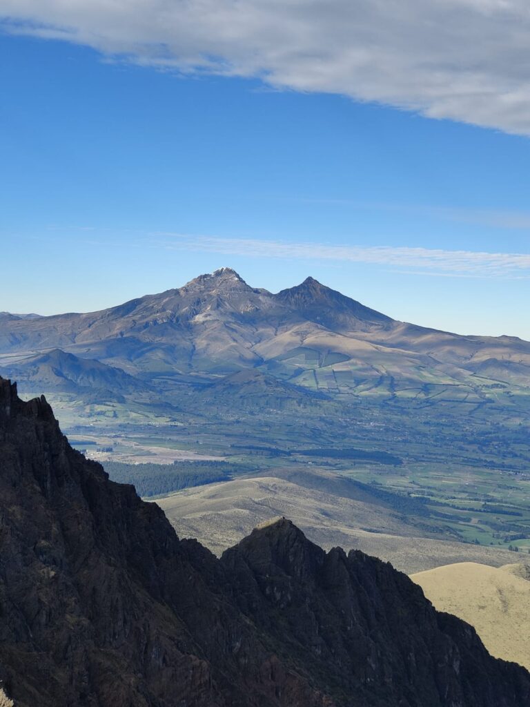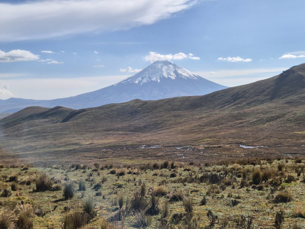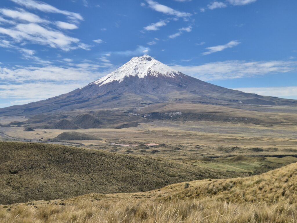 Une fois en haut, toute l’avenue des volcans se dévoile sous un ciel parfaitement dégagé : Cayambe, Antisana, Illinizas, Chimborazo… Et bien sûr, le Cotopaxi.