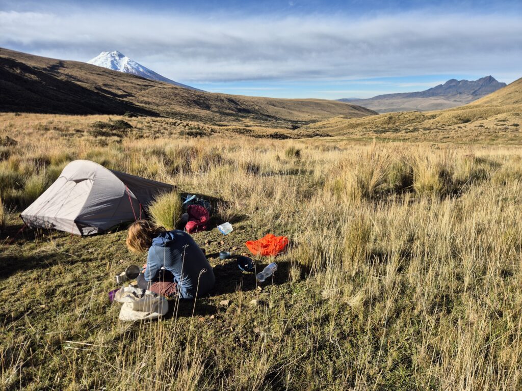 A l’exception du départ (Papallacta) et de l’arrivée (Tambopaxi), il n’existe aucun hébergement à notre connaissance sur l’ensemble du trek. Une full autonomie est donc indispensable : tente et matos de bivouac, de quoi filtrer l’eau et au moins 4-5 jours de vivres. Pas de problème pour nous, on a tout ce qu’il faut !