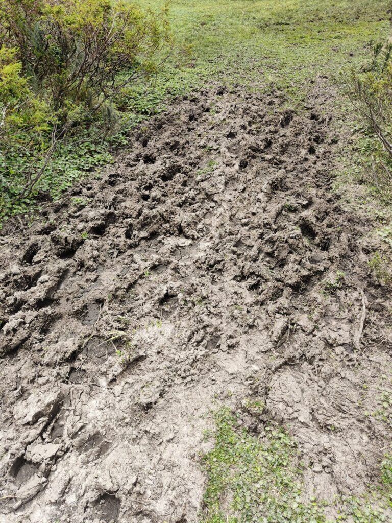 Par contre, le sentier est assez boueux et on doit fréquemment marcher en bordure. Parfois il y a tant d’herbes en travers qu’on ne distingue jamais vraiment où l’on pose les pieds. La progression est lente et délicate.