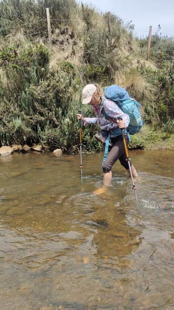 Pour l’eau, il y a quelques rivières/lagunes sur le parcours mais ne pas trop se fier aux cartes (cours d’eau à sec, ruisseaux non mappés). En général, mieux vaut recharger quand on en croise un ! (~2 par jour)