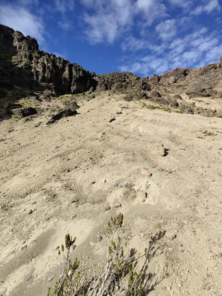 A l’arrivée sur la crête qui mène au volcan, les différents sommets de celui-ci se dressent face à moi.