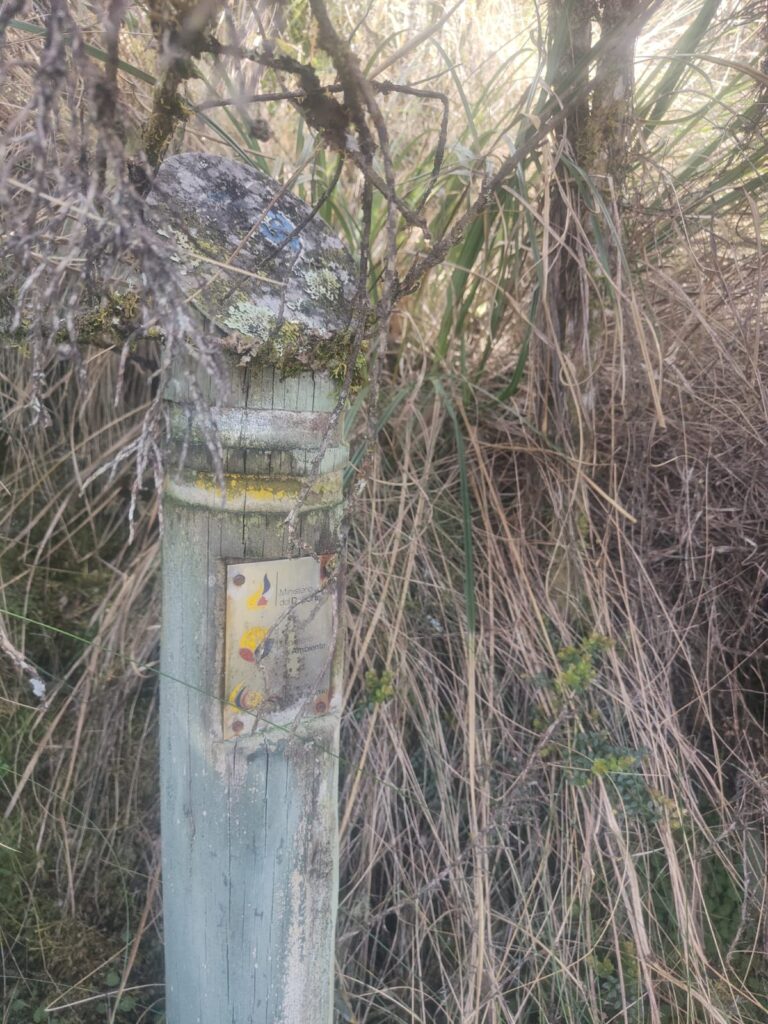On réussit tant bien que mal à retrouver un sillon qui pourrait coïncider avec le tracé OSM. Parfois il n’y a rien, parfois plusieurs traces… Vrai sentier ou tranchée de bestiaux ? On rencontre alors… des piquets balisés du parc ! Parfois à intervalles réguliers, parfois plus pendant quelques centaines de mètres… Notre hypothèse est qu’il s’agirait de l’ancien sentier officiel avant l’abandon du trek. Depuis les rares aventuriers passés par là auraient sans doute opté pour une nouvelle route.