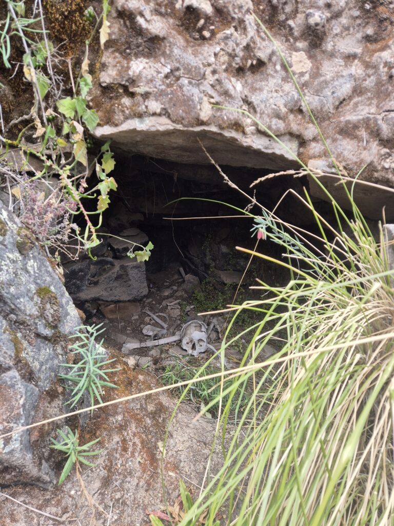Il n’est pas bien long mais ça grimpe fort, jusqu’à 4000m. On profite de belles vues en chemin et de quelques curiosités historiques comme des ossements enfouis sous un rocher, une ancienne tombe pré-inca.