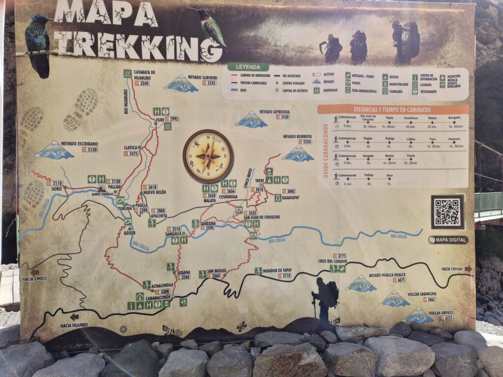 Comme l’atteste la carte plus haut, la région de Cotahuasi regorge de points d’intérêt et d’activités : randonnées, thermes, formations rocheuses, cascades…