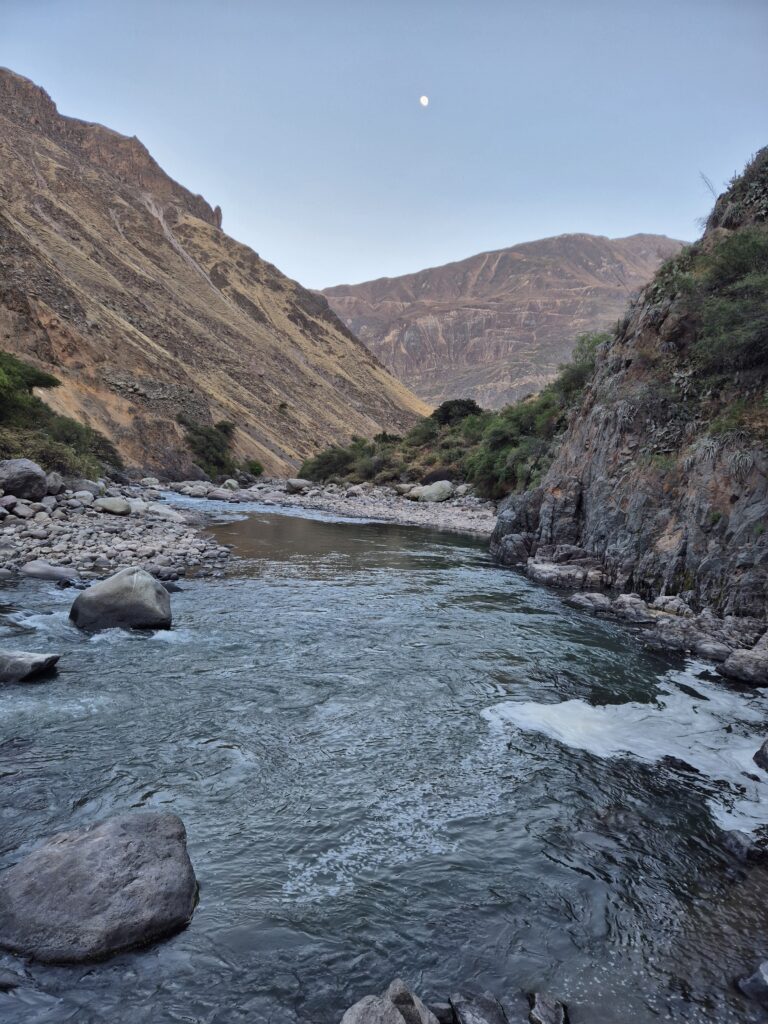Le plan est de bivouaquer dans le canyon et demain de reprendre le bus pour Cotahuasi. On demande à des locaux croisés sur la route, il semblerait qu’il n’y ait qu’un bus par jour. Il partirait vers 5-6h de Cotahuasi et ferait le trajet retour à partir de 8h. En réalité on verra un bus passer en fin d’après-midi mais pas sûr que ce soit systématique… Dommage, si on avait su, on aurait pris le bus du soir pour dormir près de la cascade de Sipia, avant de reprendre le bus au matin.